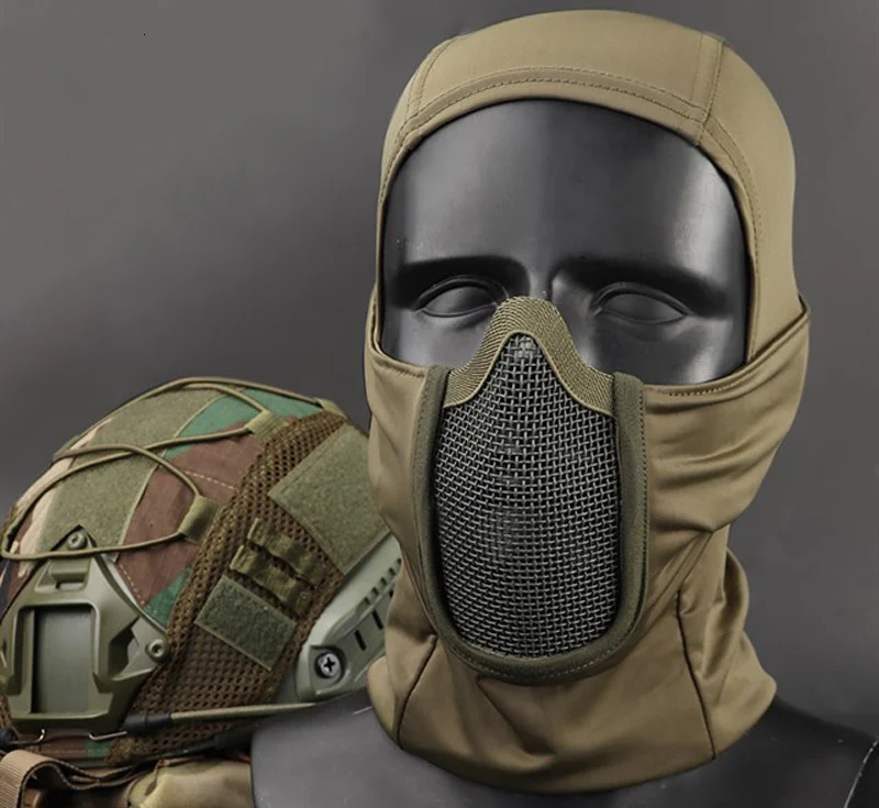 Paintabll тактическая маска Балаклава с капюшоном, полностью лицевая стальная сетка, защитная охотничья Кепка, аксессуары для страйкбола