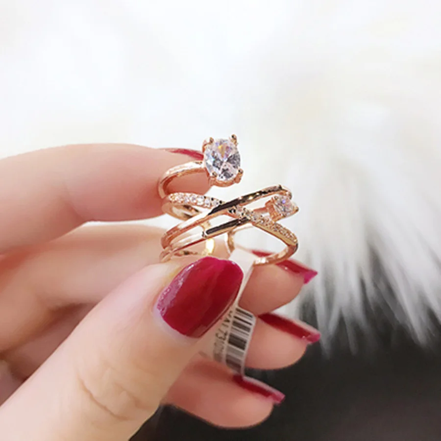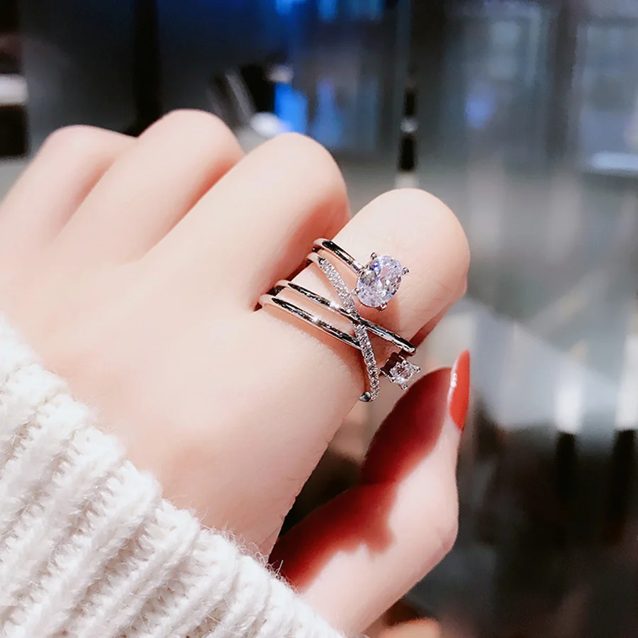Женское кольцо с австрийским кристаллом, регулируемое кольцо в стиле панк с кубическим цирконием, обручальное кольцо, B0001
