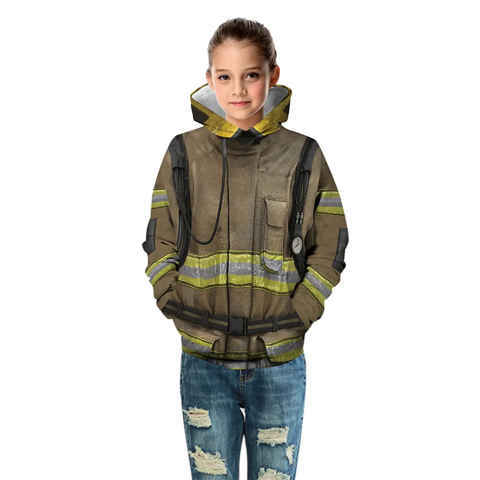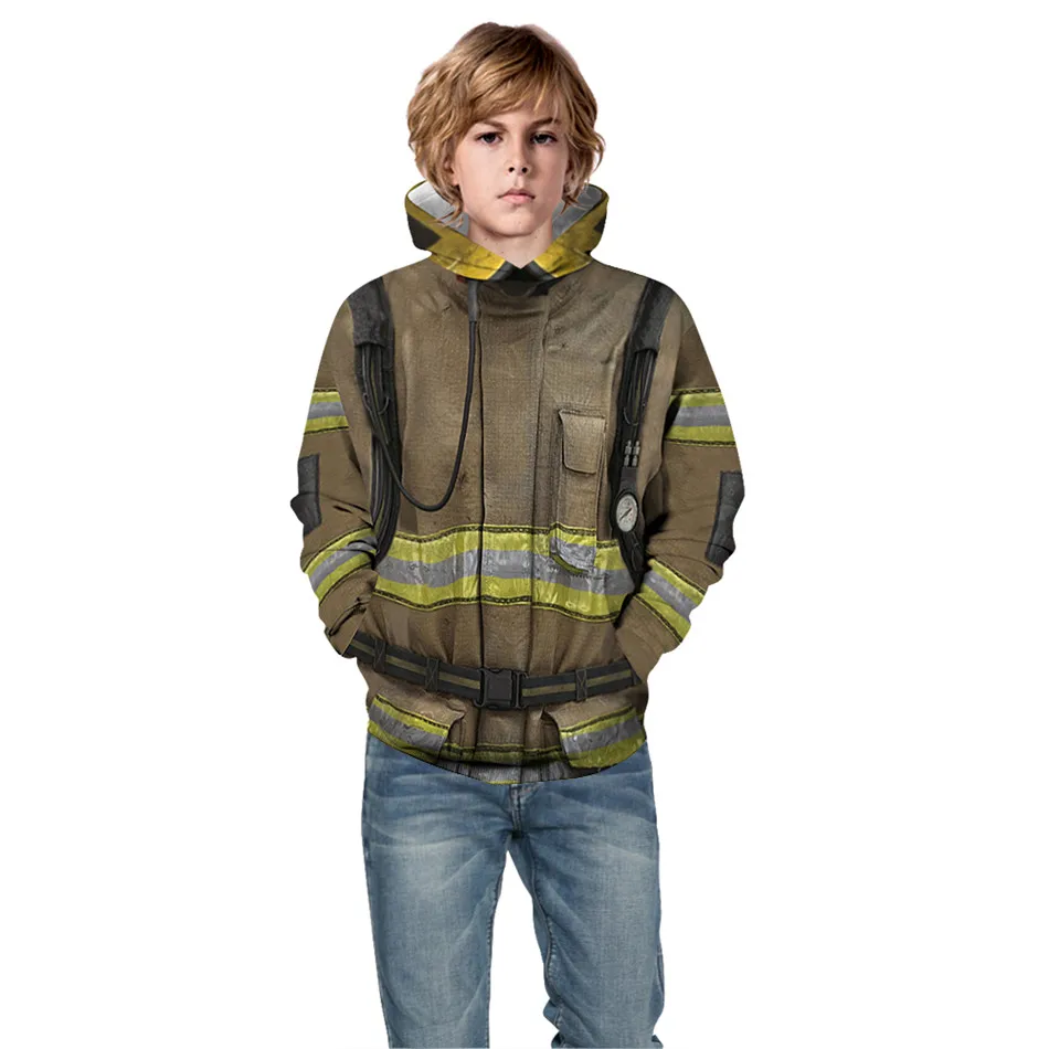 Новинка Осень 2022, костюм пожарного с 3D принтом для мальчиков и девочек, костюм пожарного, искусственный костюм пожарного, худи для косплея, Детские свитшоты с капюшоном, детский пуловер
