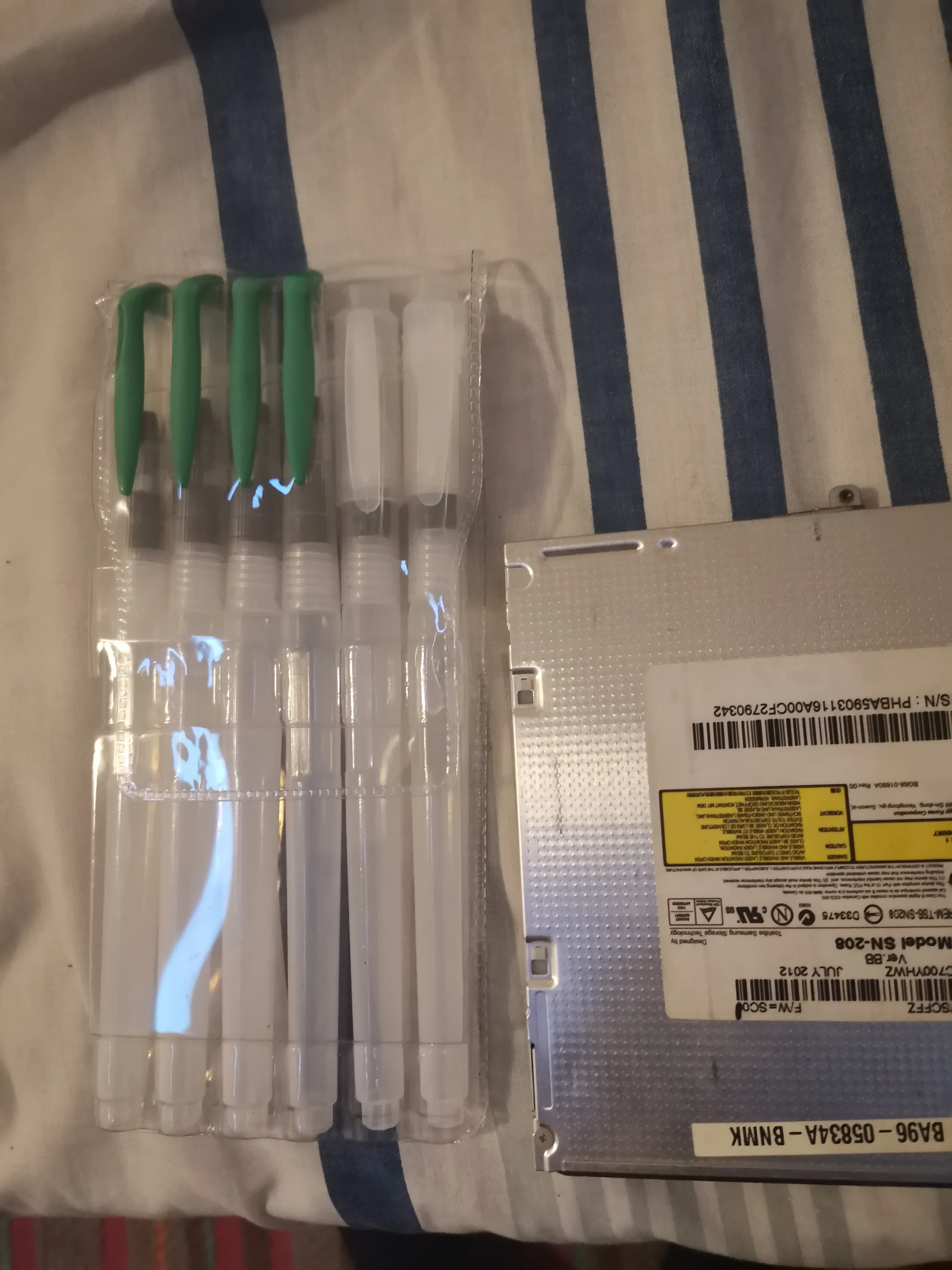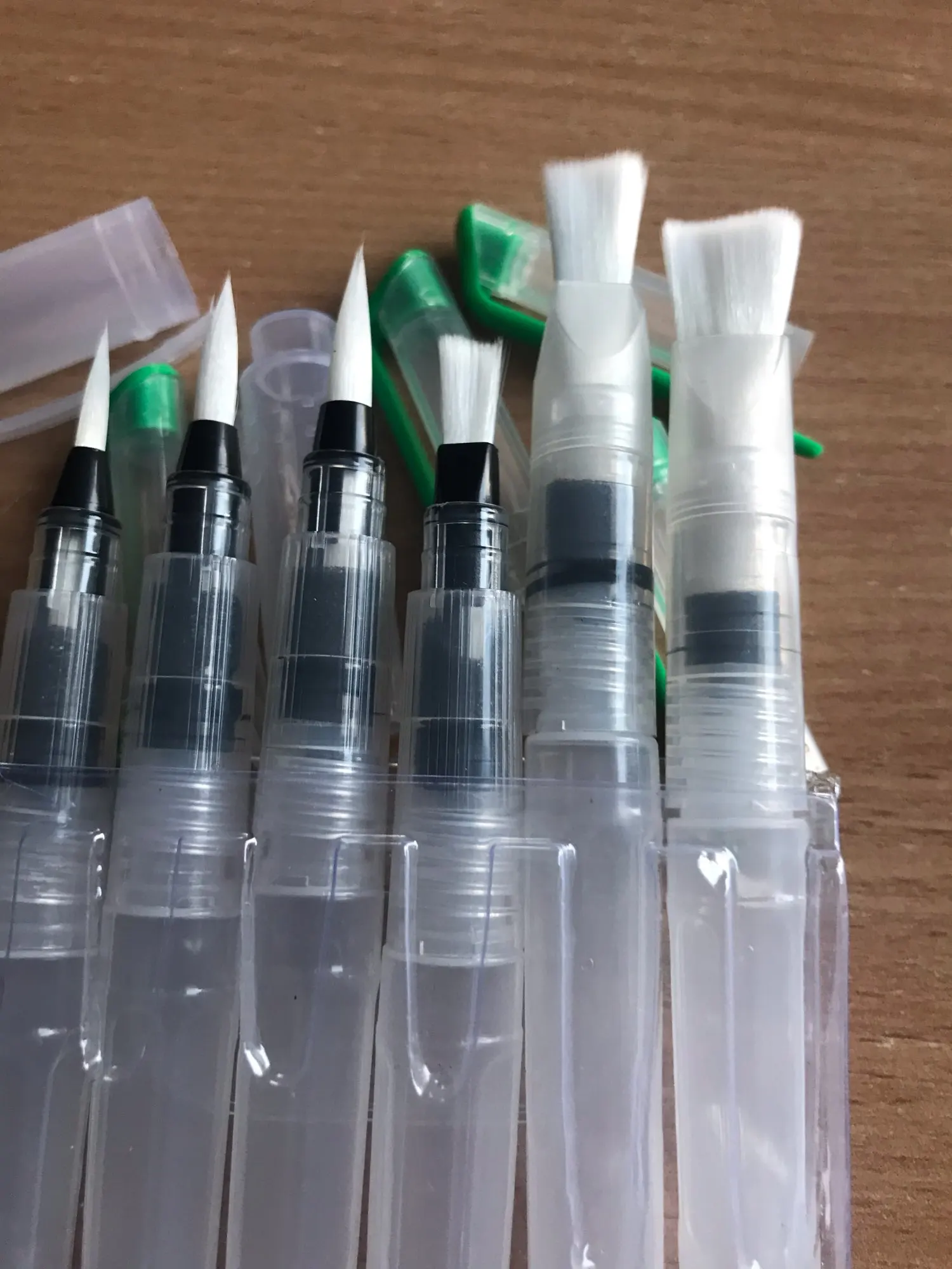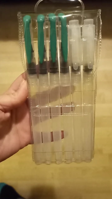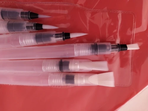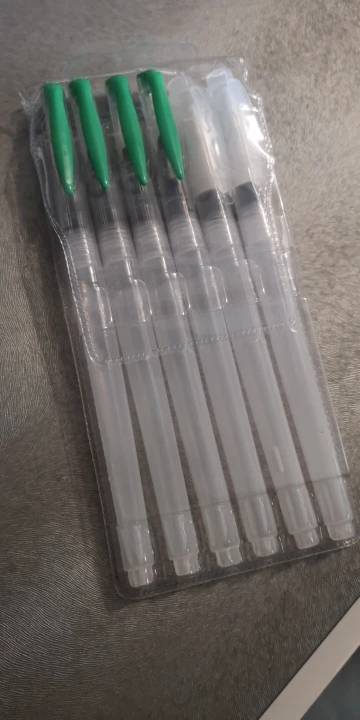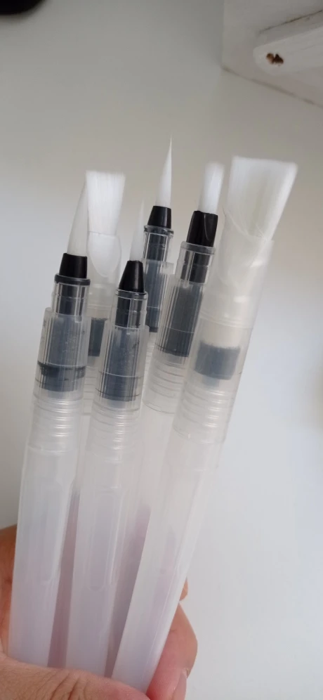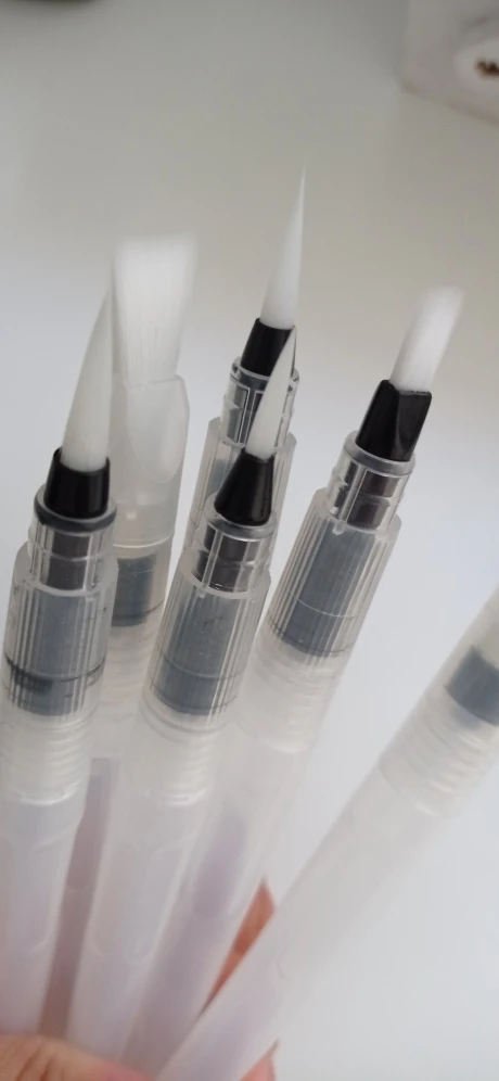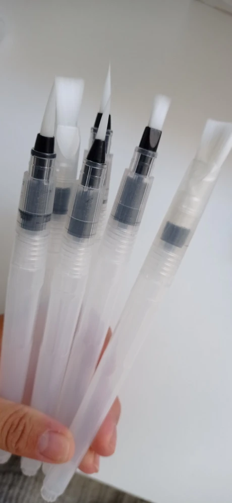 Товар пришёл достаточно быстро Хорошие кисти, если привыкнуть к ним: - резервуар откручивается по часовой - нужно немного ждать прежде, чем кисть намочится - капли воды могут быстро стечь на бумагу, не промачив при этом саму кисть Есть незначительные дефекты, но пользоваться можно