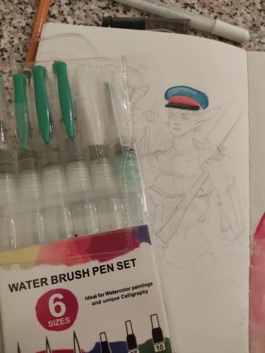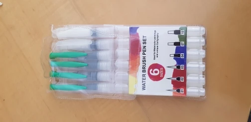 За свои деньги хороший набор, но вода малость плохо льется, сухая кисть если рисовать быстро - если сравнивать с фирменной кистью derwent например. Но и цена у них в разы отличается. Объем резервуара большой, на картинке казался меньше ))