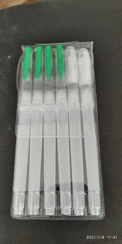 Пришел чуть раньше срока.Сначала было непонятно и показалось что это странные ручки(даже испуг взял),но выяснилось что это такие колпачки.Красиво и удобно.НО!Открываются и закрываются нестандартно для россии.Будте бдительны!(чуть не сломал пока понял) Спасибо большое!Очень удобные кисти!