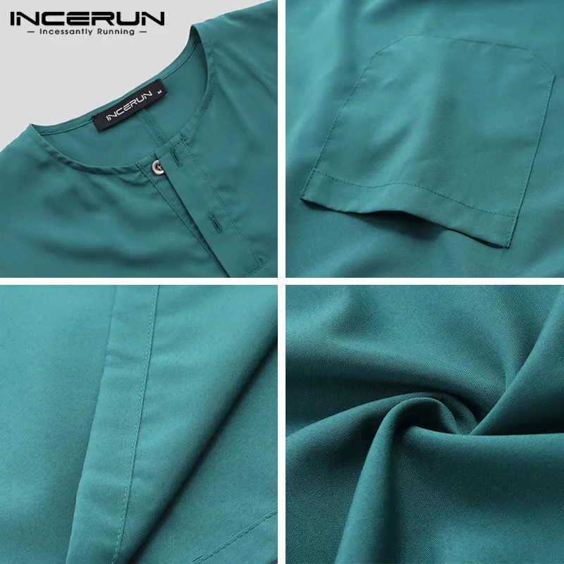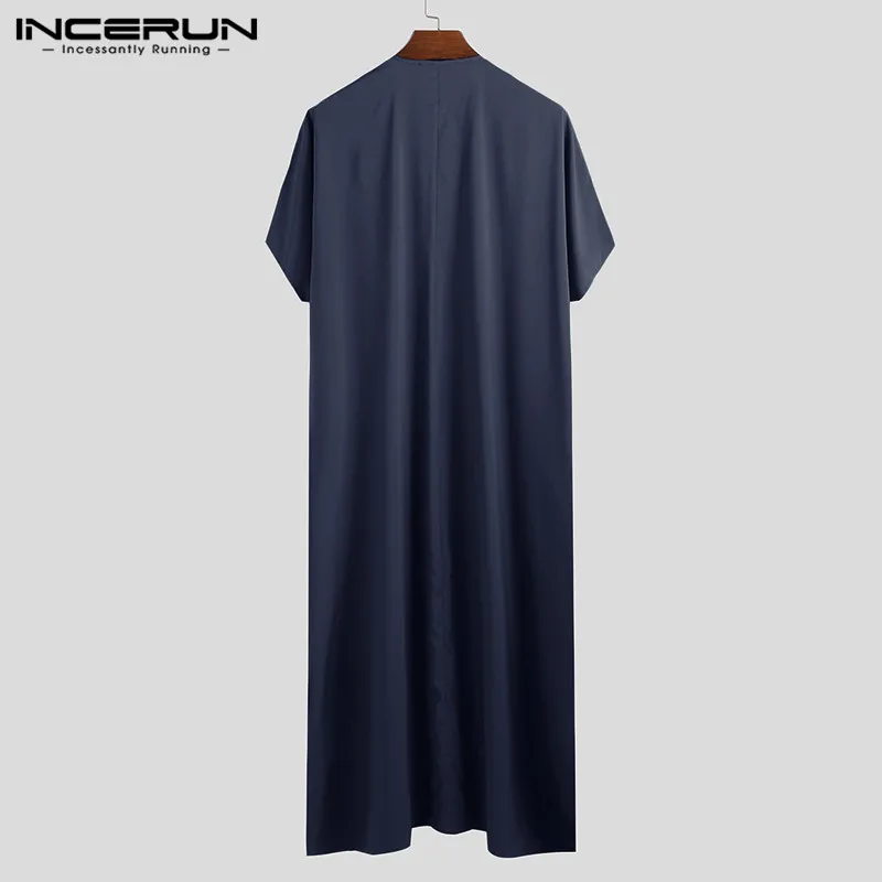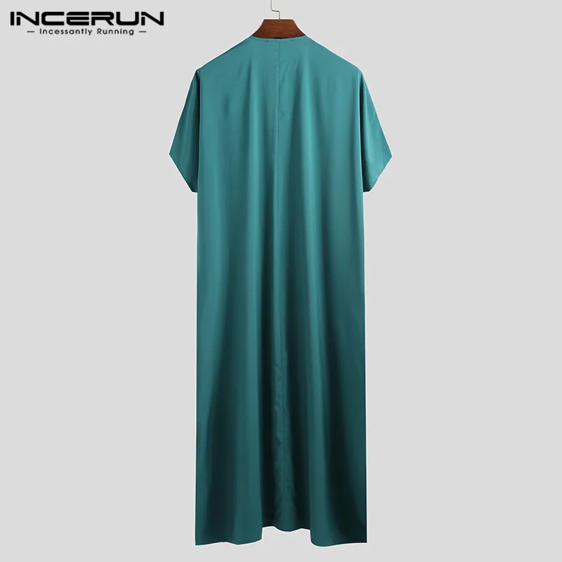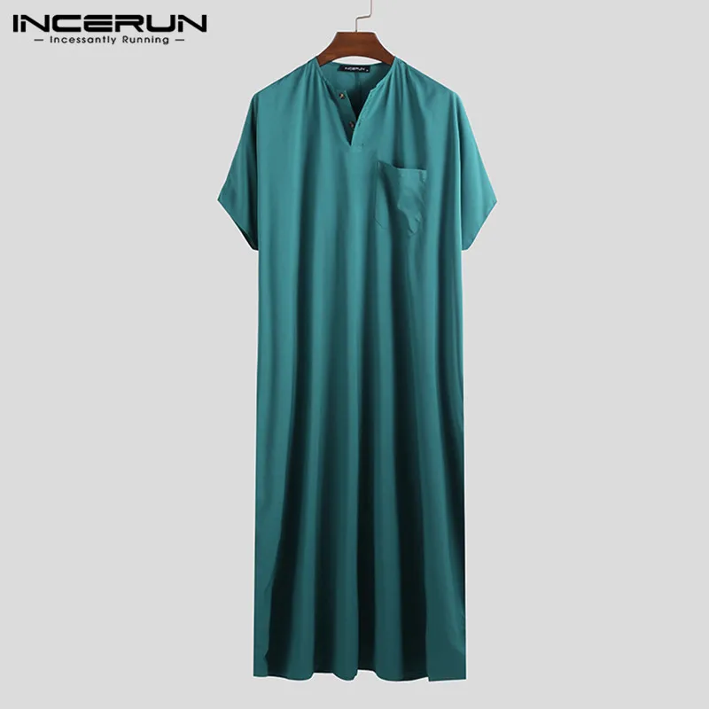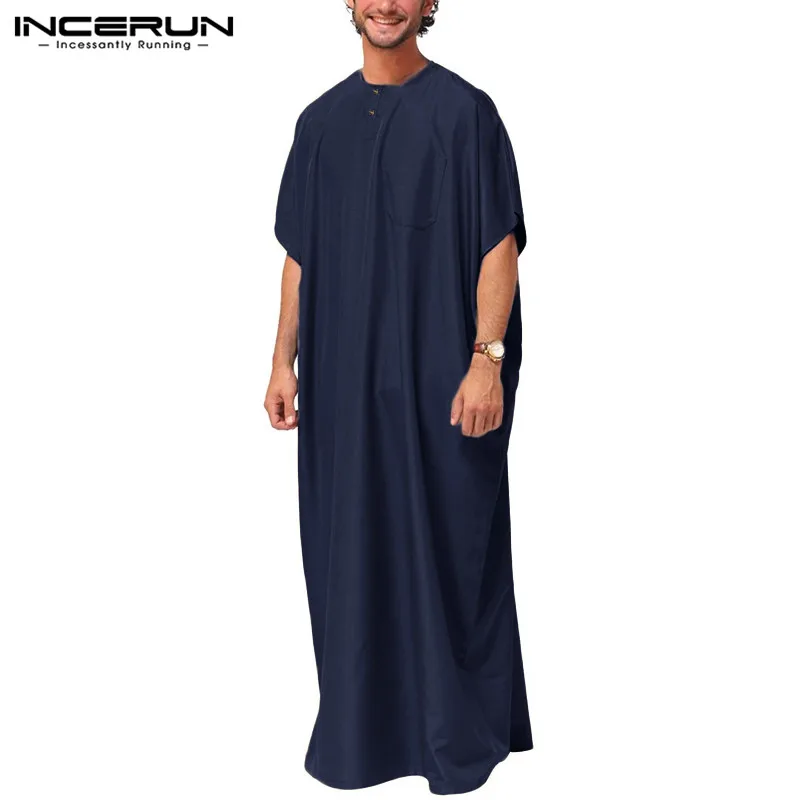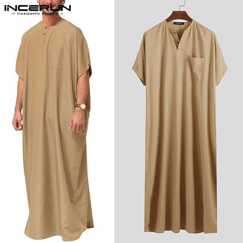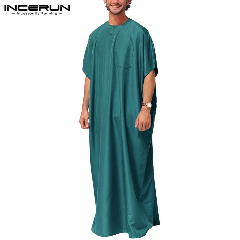 INCERUN мужской кафтан с коротким рукавом, исламский, арабский, однотонный, свободный, абайя, Саудовская Аравия Средний Запад, Jubba tobe, мусульманская одежда 5XL