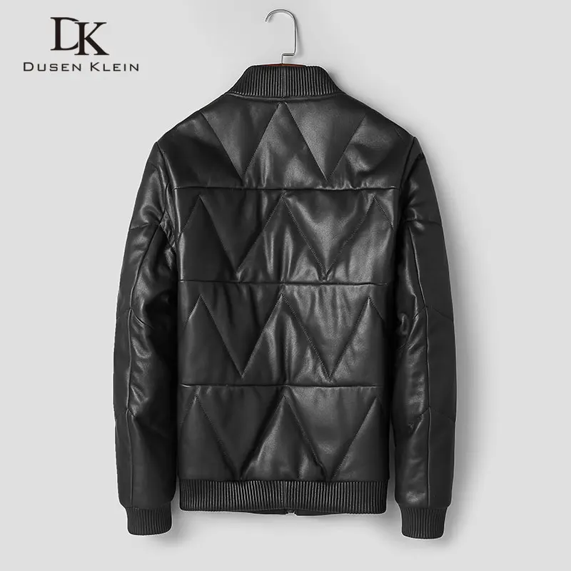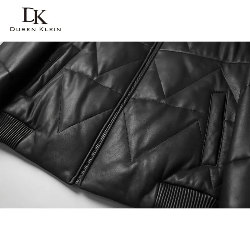 Мужские Зимние Куртки из натуральной кожи , пуховые дусен Клейн, короткие приталенные дизайнерские пуховые пальто - светильник , повседневная черная кожаная одежда t0066 дубленка зимний костюм мужской