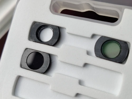 Фирменные качественные фильтры. Как и в описании. Доставка три недели. Заказывал два фильтра. Пробовал приклеивать к камере квадрокоптера. Держатся крепко. Перед наклейкой обезжирьте поверхность.