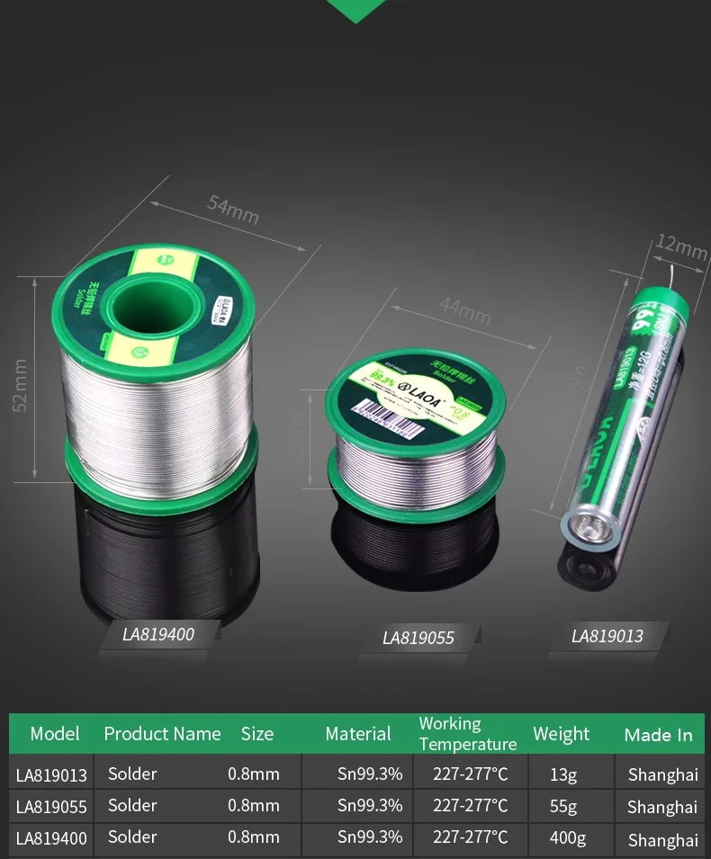 LAOA активный бессвинцовый припой проволока 0,8 мм для электрического паяльника сварочный ремень канифоль ядро Олово 99.3% содержит высокой чистоты олова