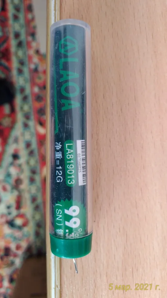 В заказе указано 13 граммов олова, прислано согласно надписи на упаковке 12 граммов. А это, между прочим разница в 8%. Неплохая незаметная надбавка к цене. Нельзя так делать.