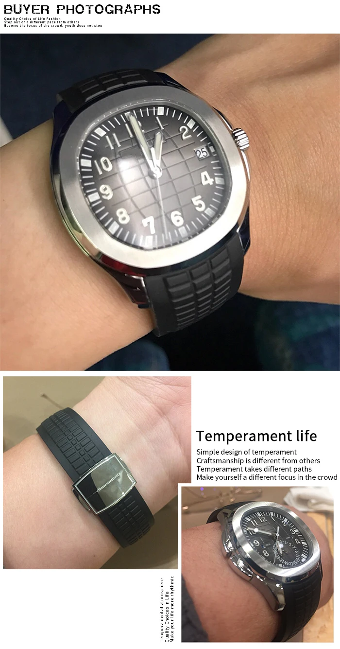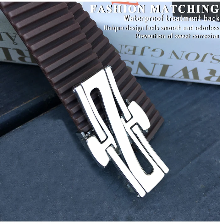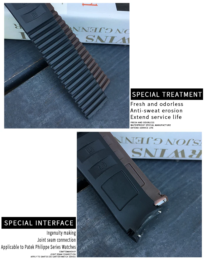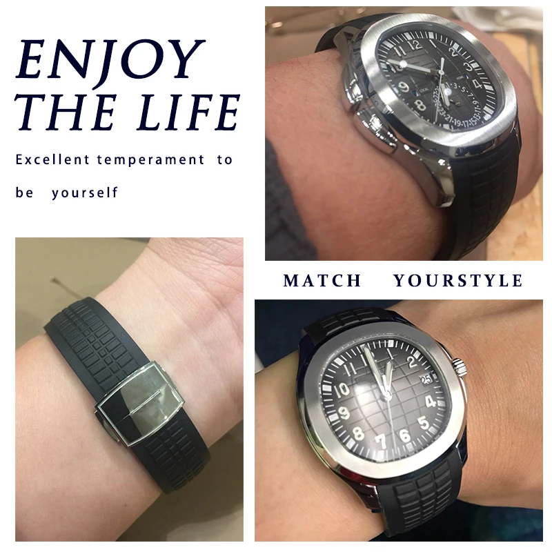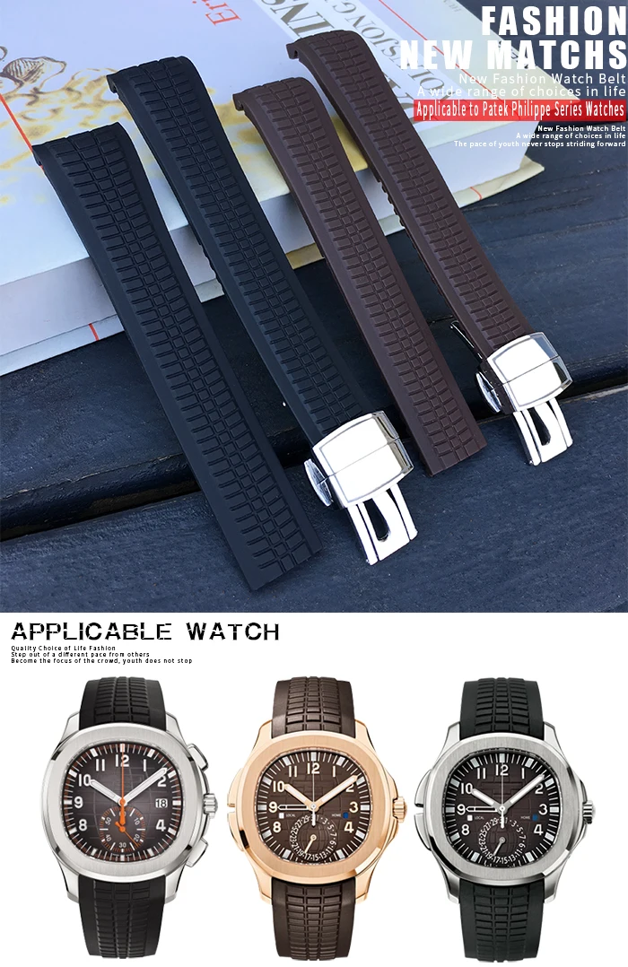 Ремешок для часов из резины и силикона, 21 мм, черный, коричневый, водонепроницаемый, с пряжкой-бабочкой, ремешки для часов PATEK PHILIPPK Series