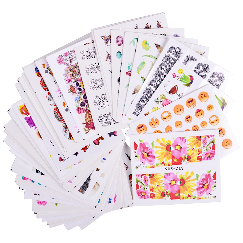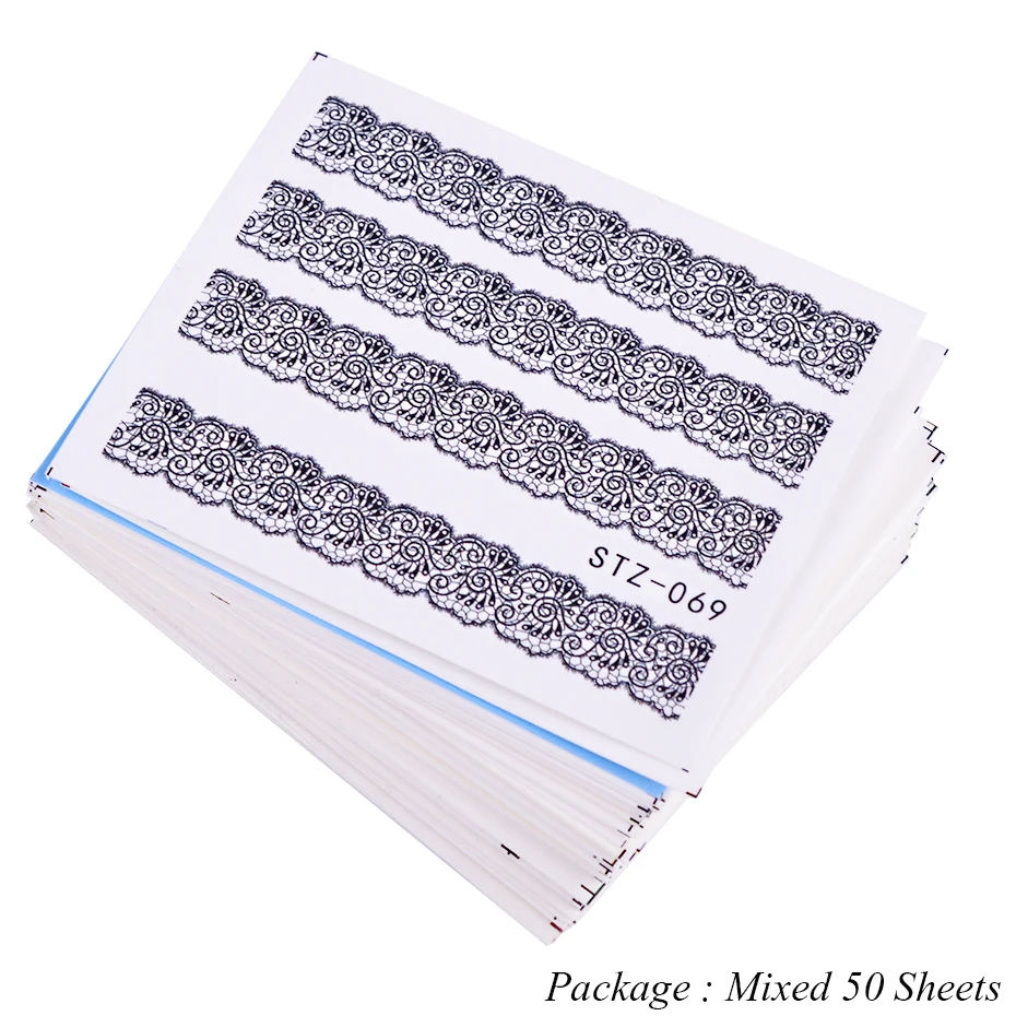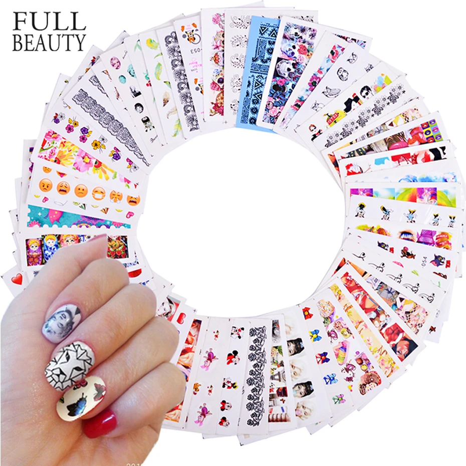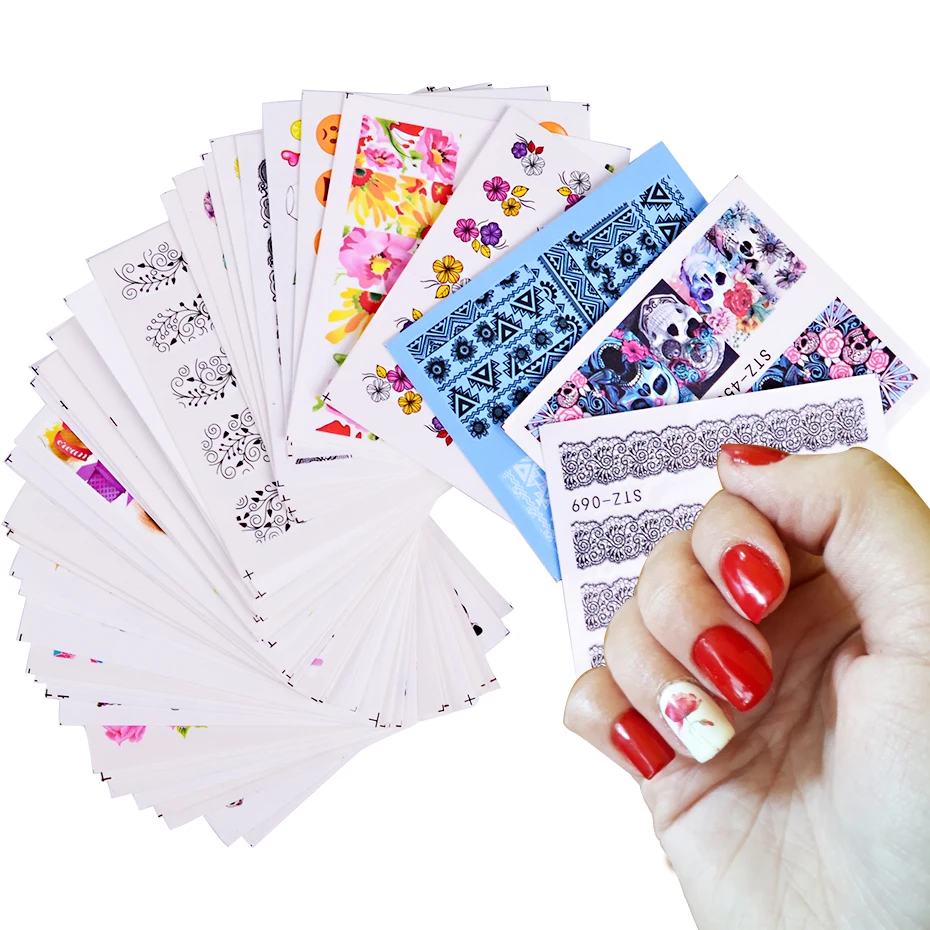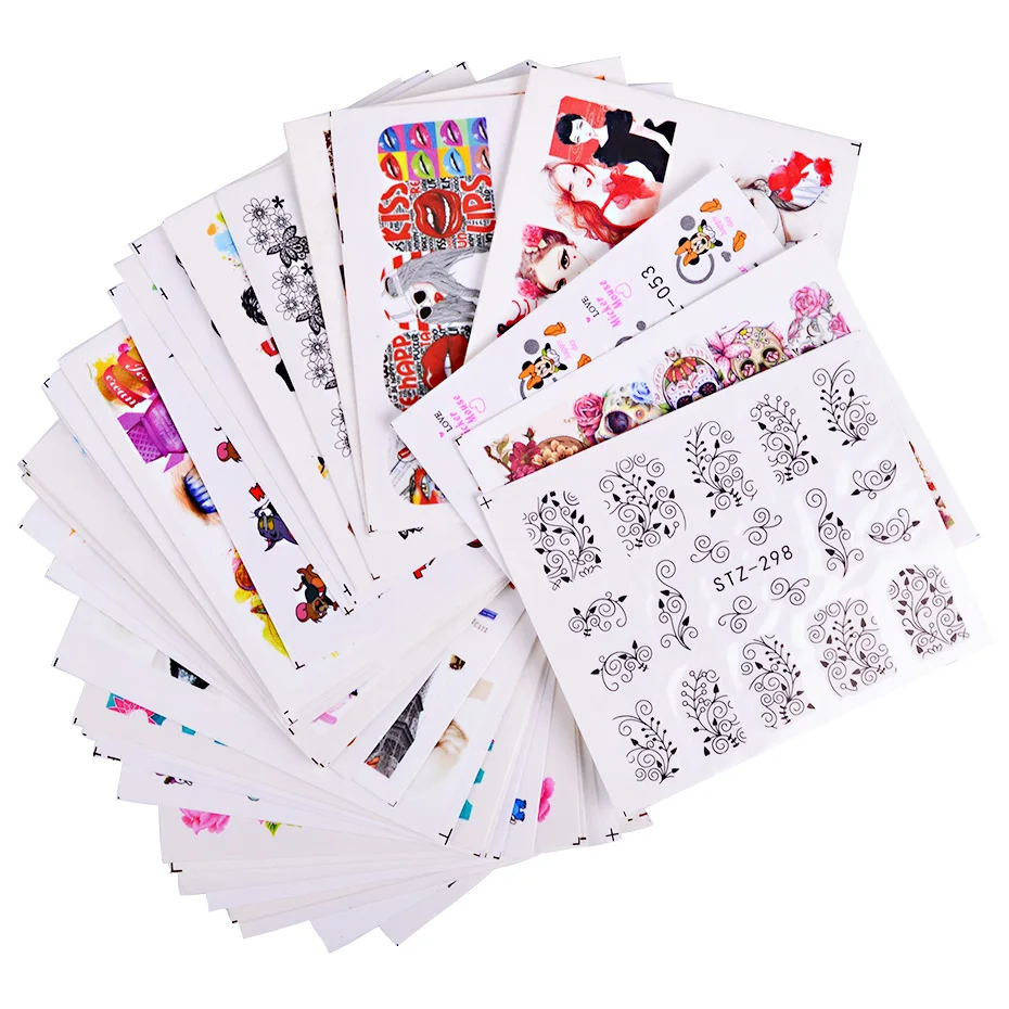 Переводные наклейки для ногтей, разные дизайны, 50 шт., красота, цветок, Переводные картинки, водяной знак, украшение для ногтей, водяной знак, маникюр, CHM50-1