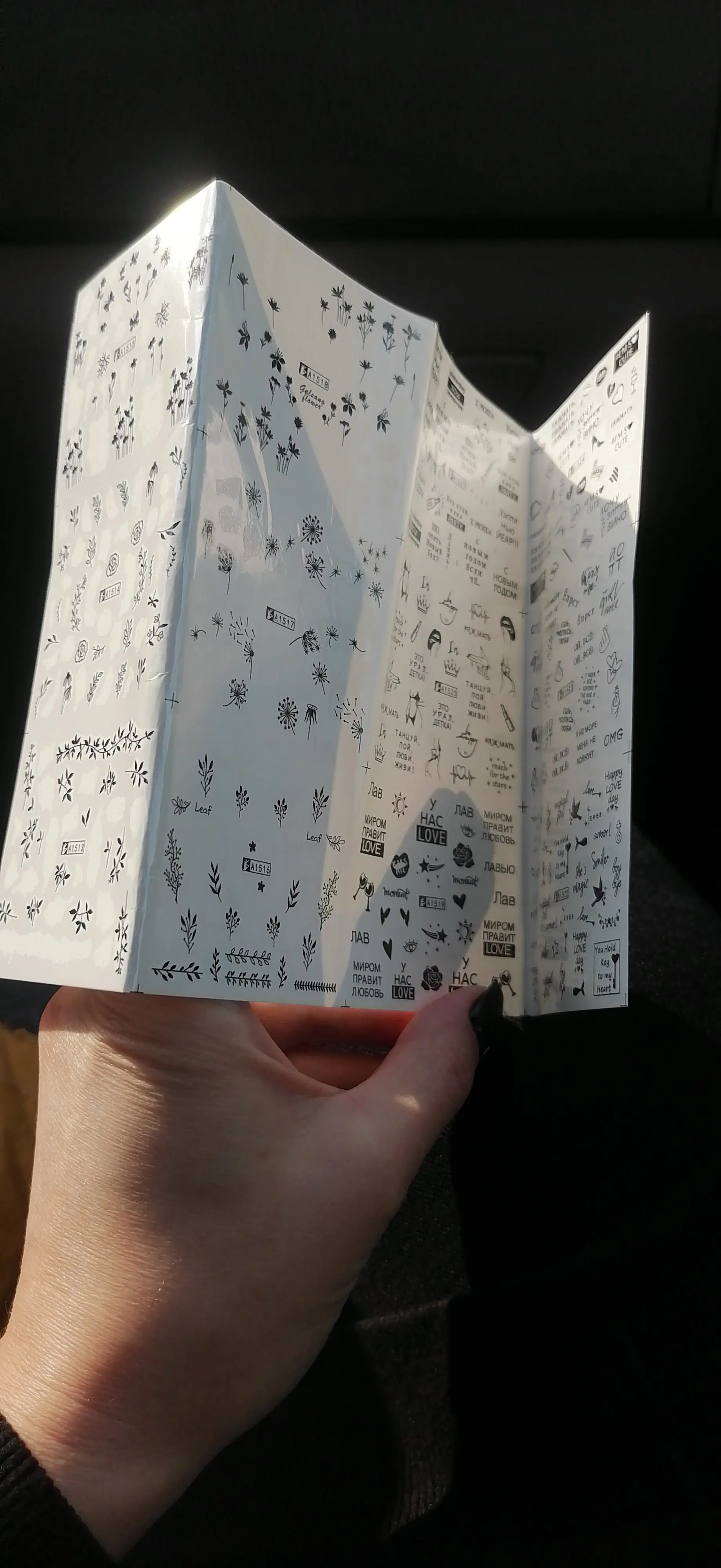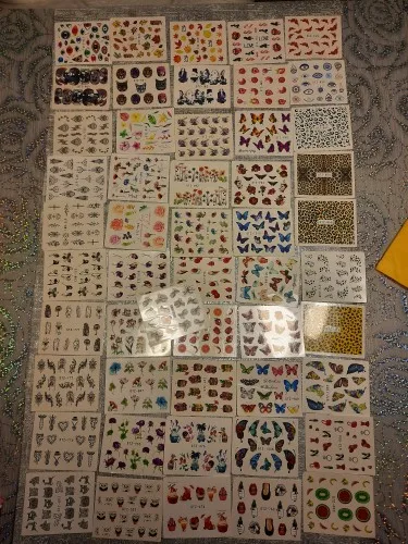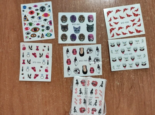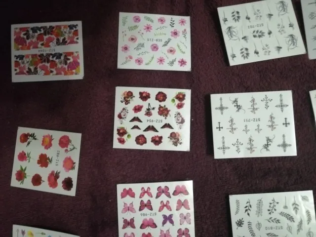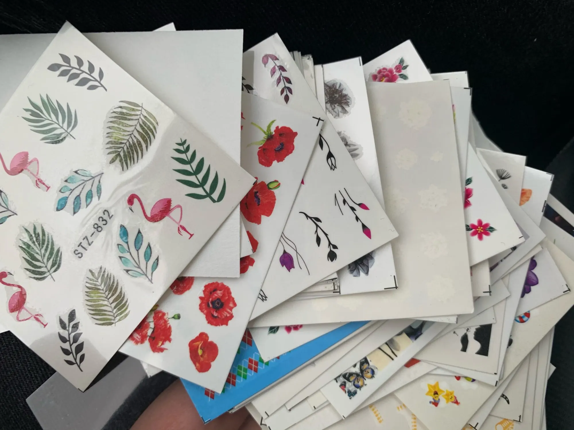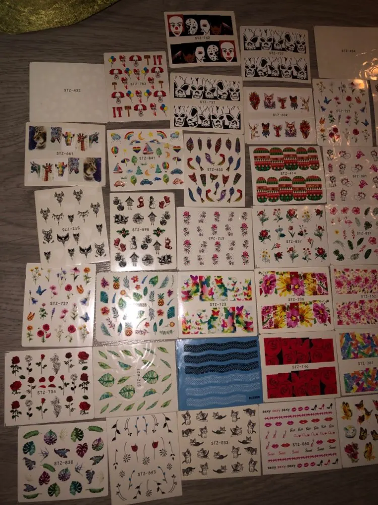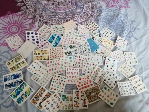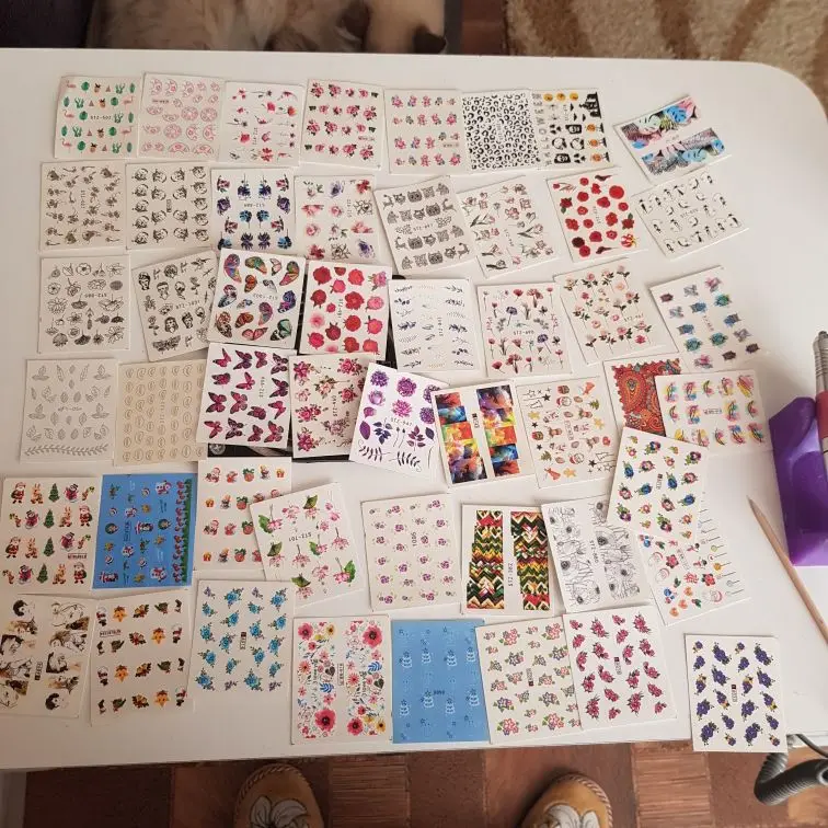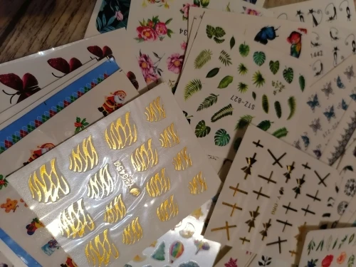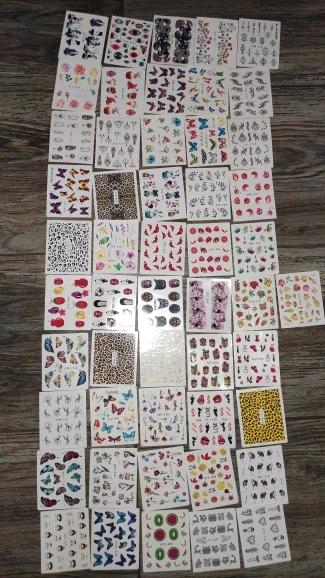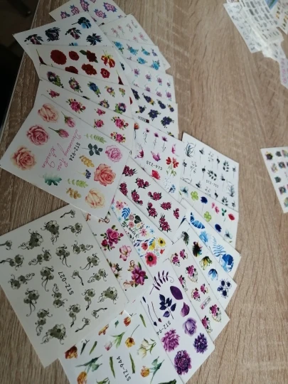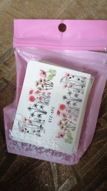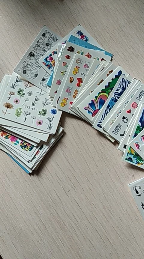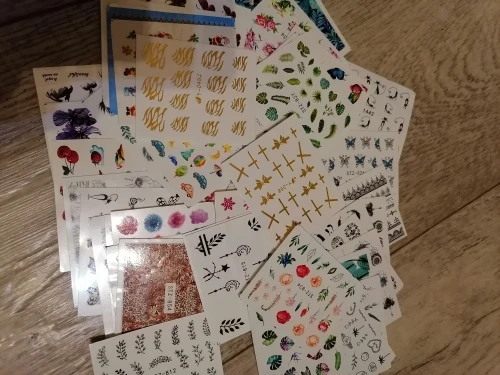 Наклейки пришли в Калининград быстро, доставка заняла меньше месяца. В комплекте больше цветочных принтов, что немного расстраивает, но за такие деньги и такое количество просто подарок!