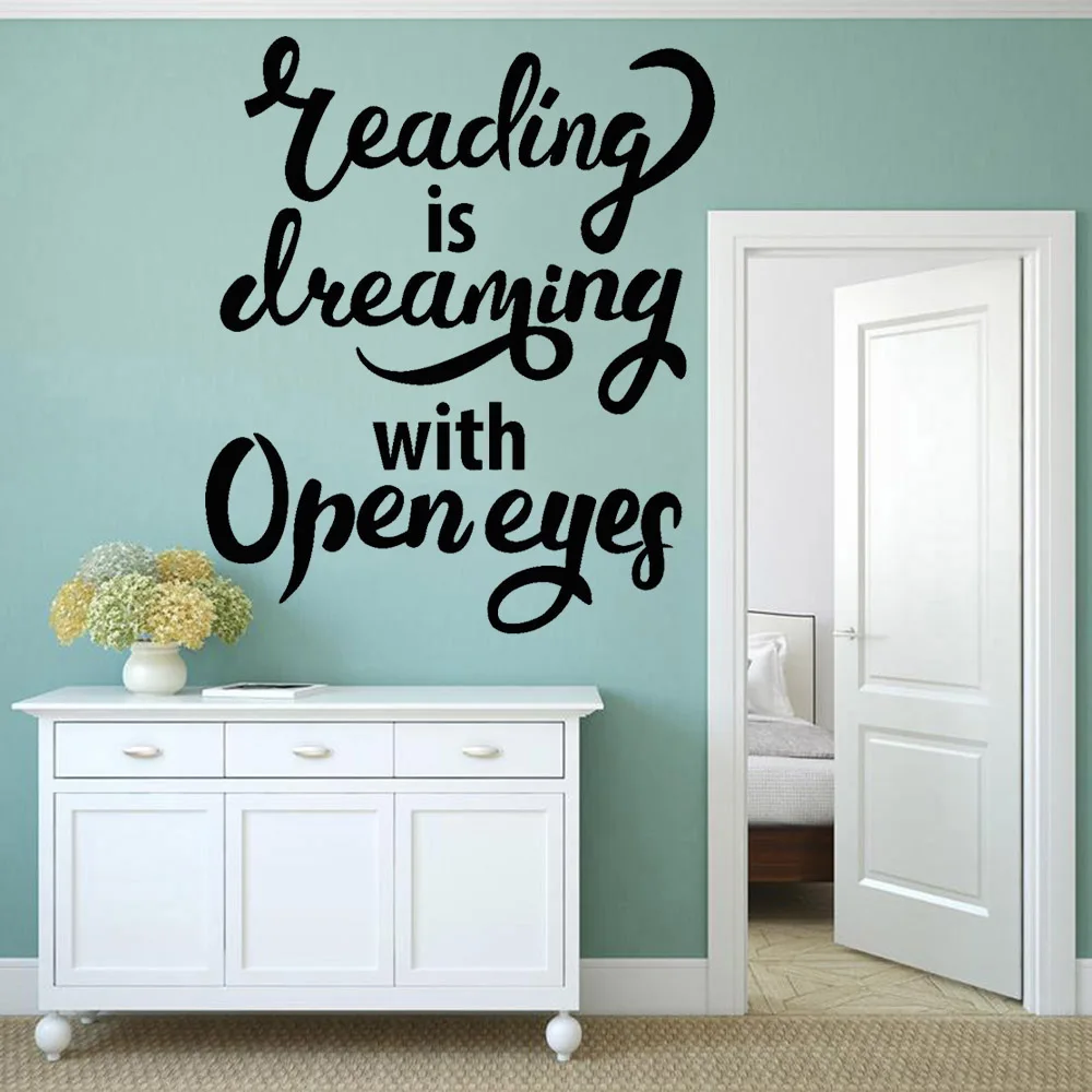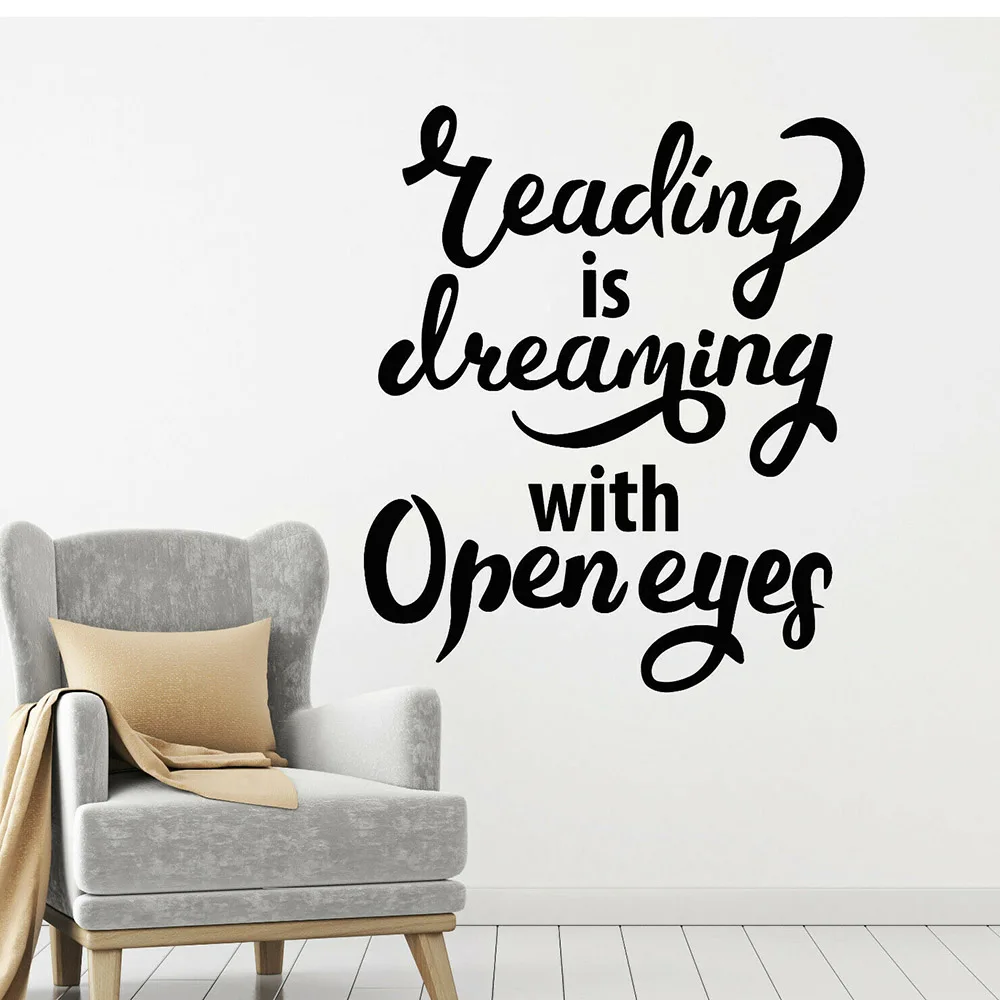 Виниловая настенная наклейка для комнаты для чтения, Настенная Наклейка для библиотеки, цитата ведущая мечта с открытыми глазами, Настенная Наклейка для книжного магазина s W317