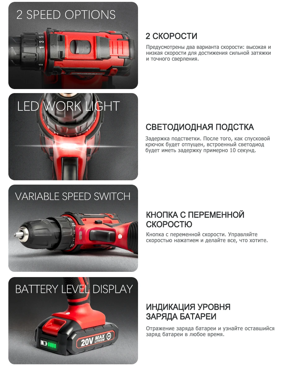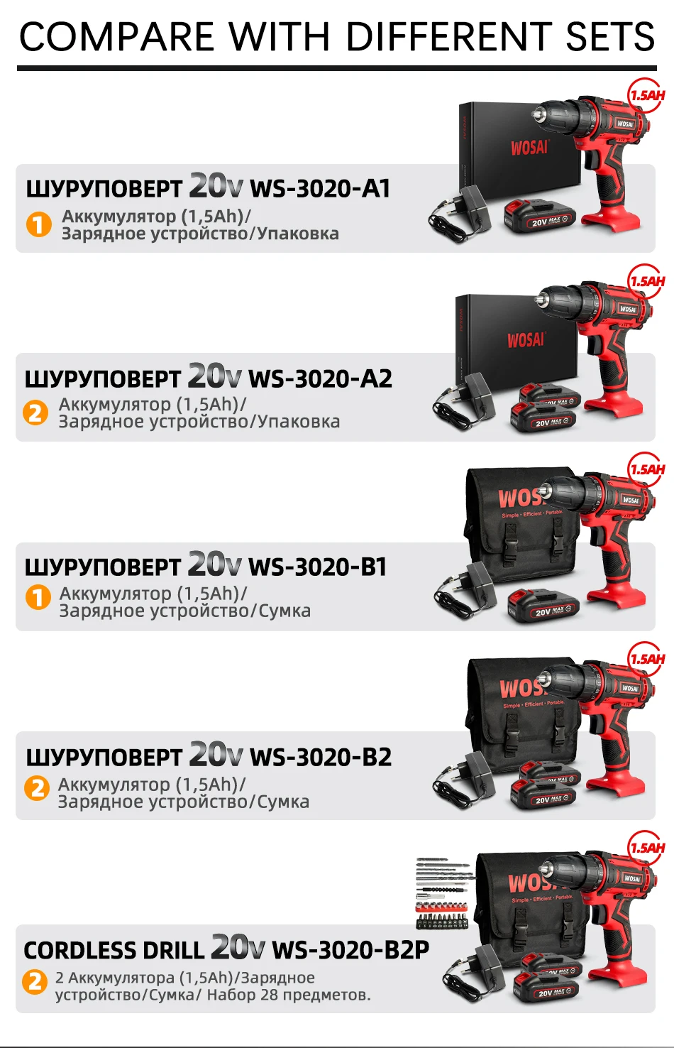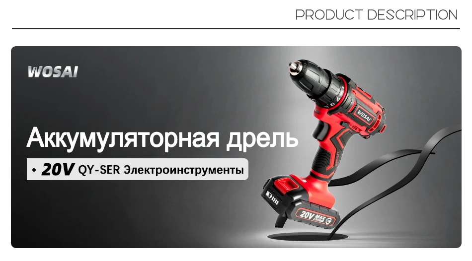 WOSAI Новый 20 в беспроводной дрель электрическая отвертка мини беспроводной драйвер питания DC литий-ионный аккумулятор 38 дюйма 2 скорости электроинструменты