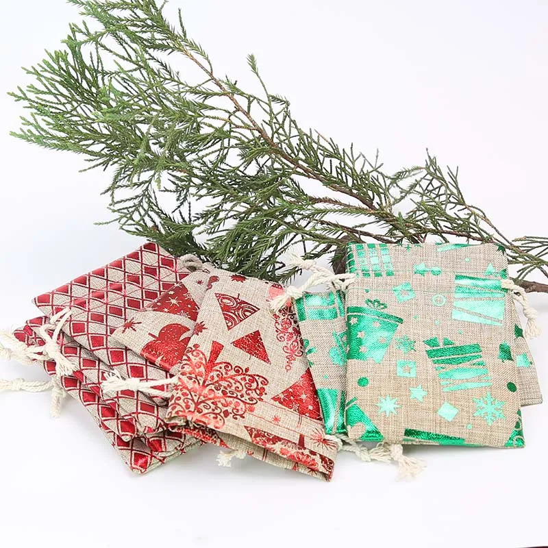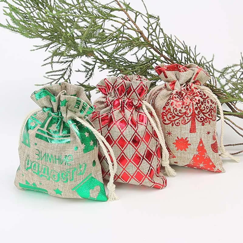 9*12 см горячая штамповка имитация конопли пакет карман новые рождественские украшения товары Подарочный пакет 20 штук