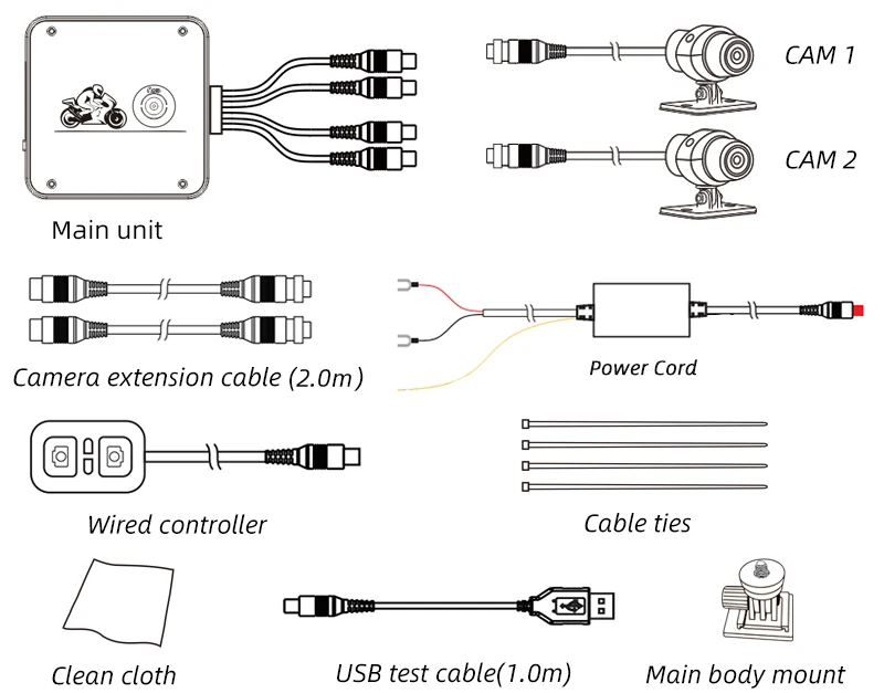 Видеорегистратор с двумя камерами, оснащенный 2,5 м кабель для камеры можно установить в каких-либо в байкерском стиле