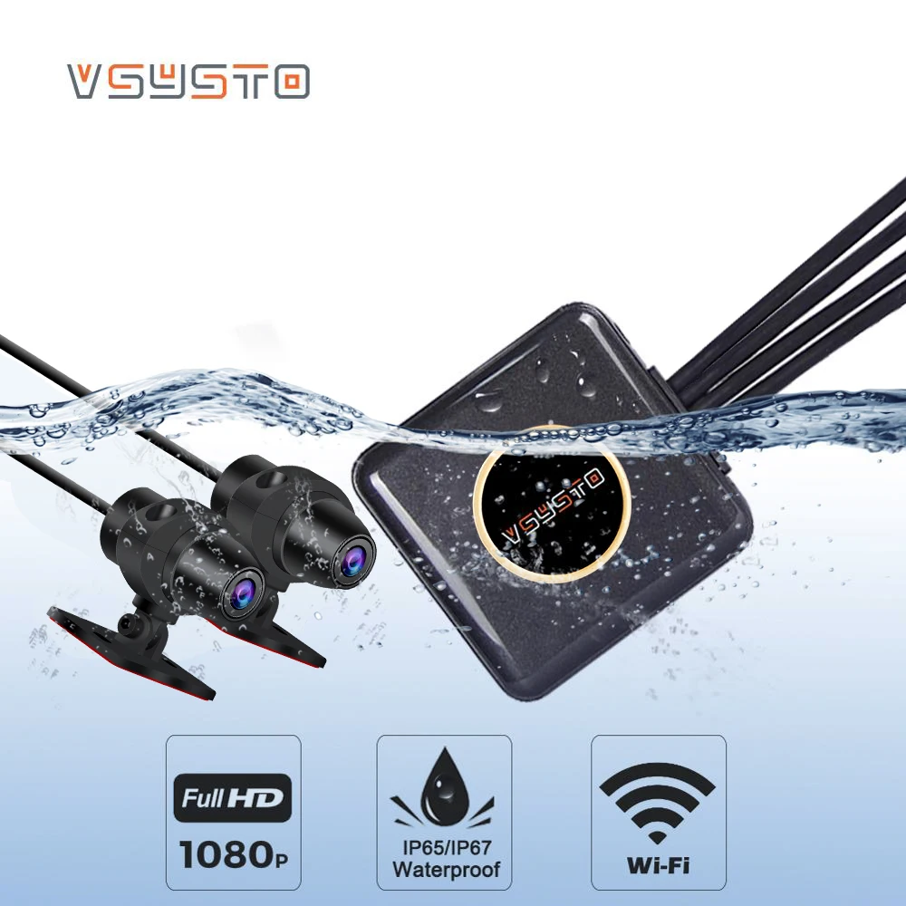 VSYSTO P6FL мотоциклетные видеорегистратор с разрешением full корпус водонепроницаемый Wi-Fi мотоцикл DVR 1080P спереди и камера заднего вида Встроенный датчик поворачивания экрана
