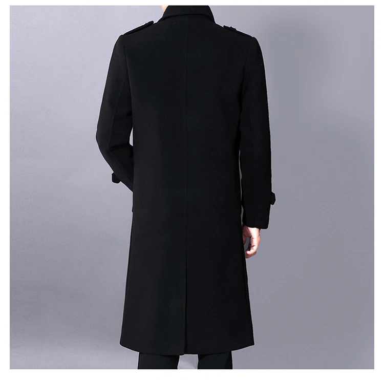 Длинное пальто для мужчин, зимний теплый Тренч, пальто из шерстяной ткани, мужские двубортные приталенные повседневные куртки, однотонная деловая верхняя одежда