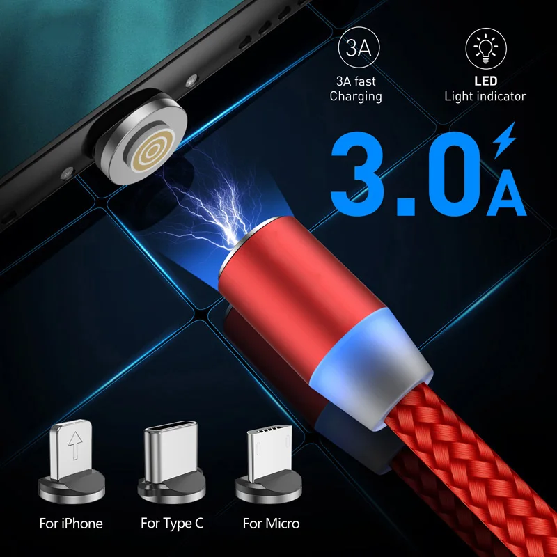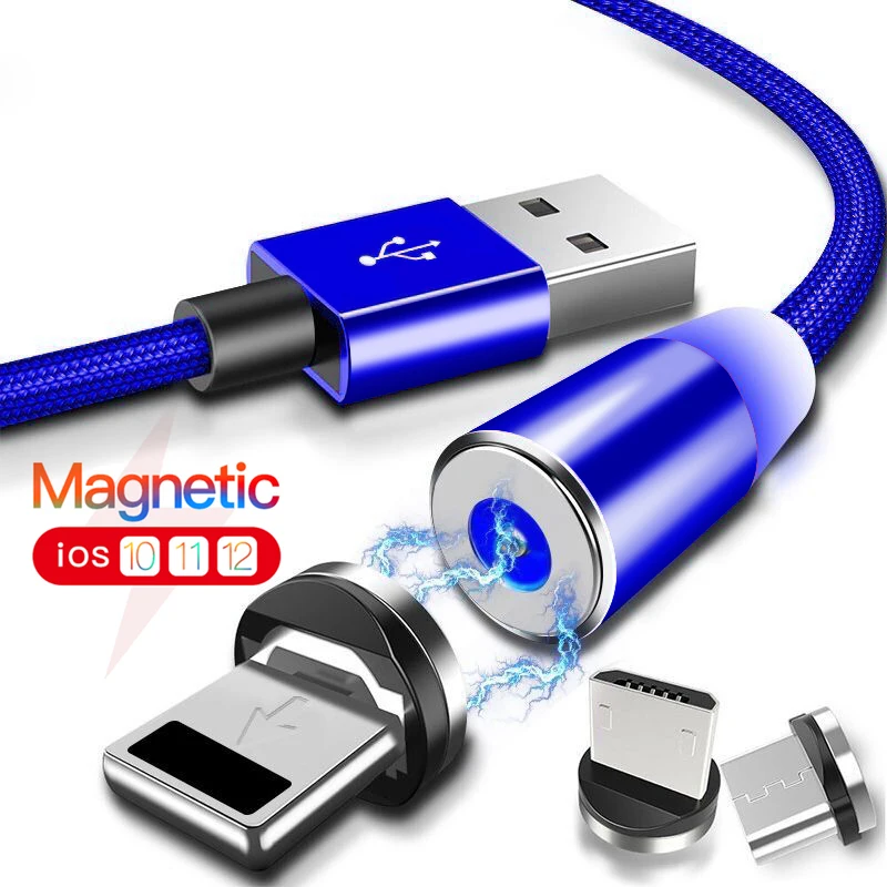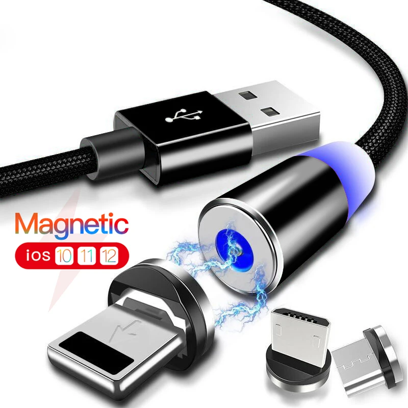 Магнитный кабель USLION 2M 3A Micro USB Type C для быстрой зарядки ...
