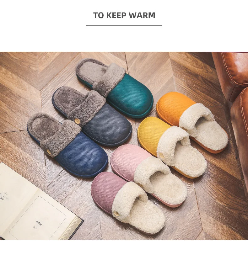 Зимние тапочки для мужчин и женщин, плюшевые водонепроницаемые теплые меховые тапочки из ЭВА, тапки для влюбленных, домашние тапочки, домашняя обувь для женщин