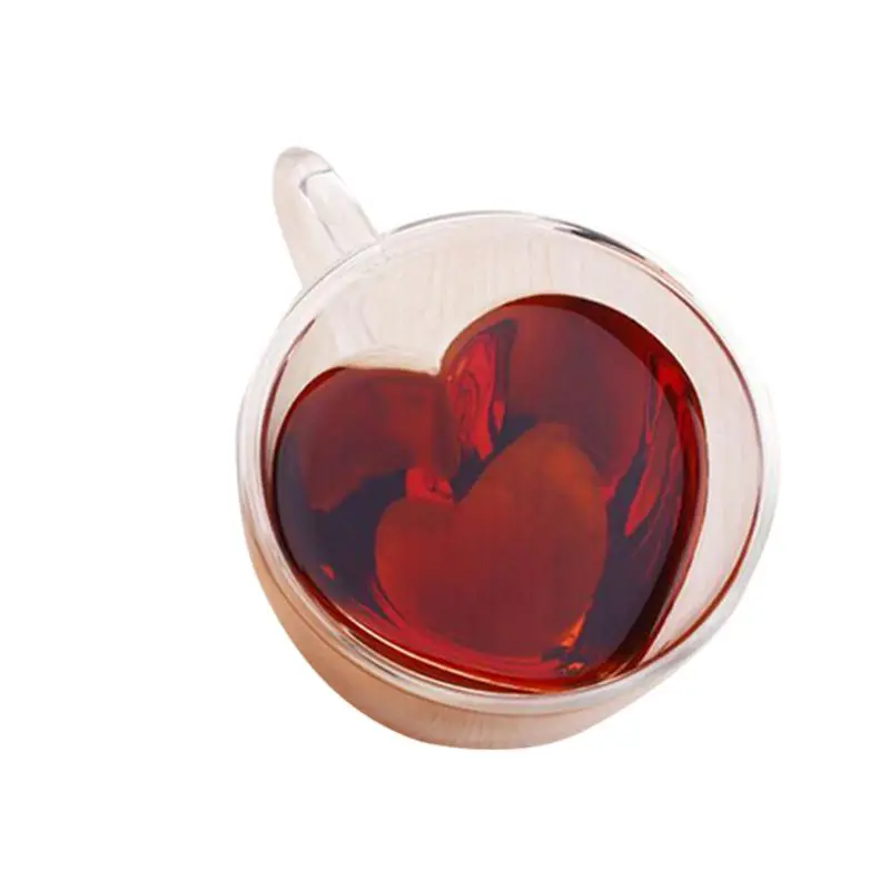 Кружка с двойными стенками для чая, чашка в форме сердца, бокал шам...
