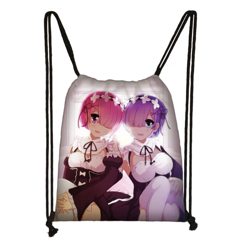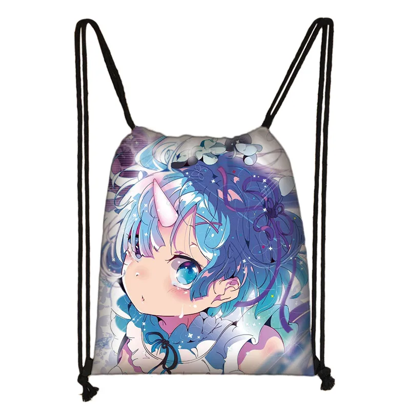 Сумка на шнурке Re:Zero kara Hajimeru Isekai Seikatsu, женская сумка для хранения, рюкзак для подростков аниме Emilia Rem, Детская сумка для книг в подарок