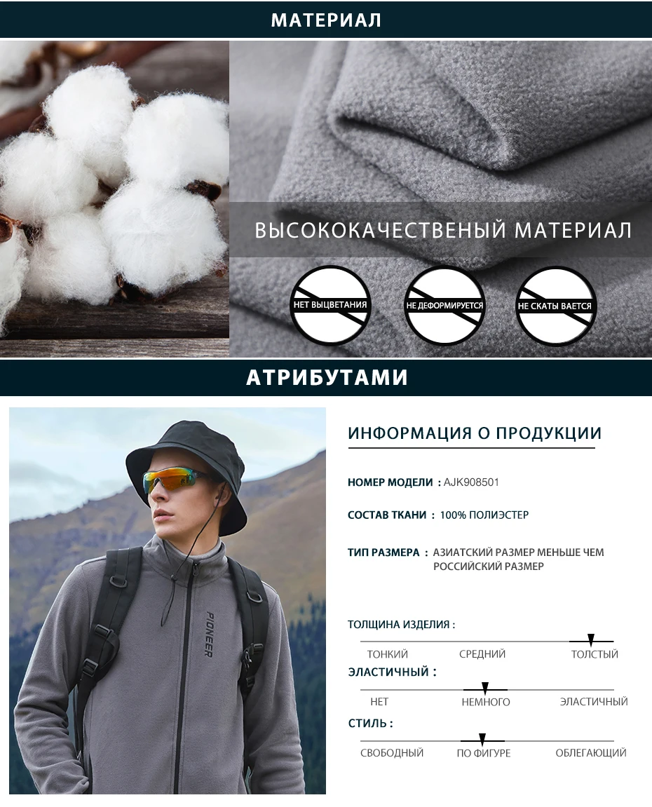 Мужская Флисовая Куртка Pioneer Camp, черная или серая Повседневная куртка на молнии с воротником-стойкой, AJK908501, осень 2019
