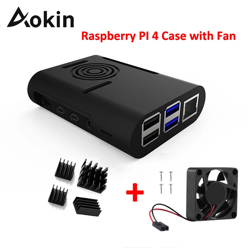 Чехол Aokin для Raspberry Pi 4, алюминиевый радиатор с охлаждающим вентилятором для Raspberry Pi 4, Модель B для Pi 4B