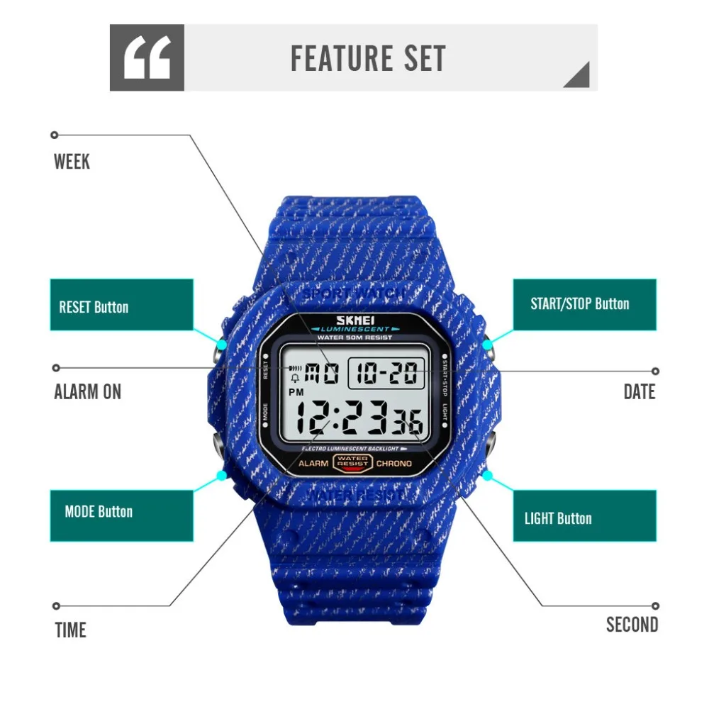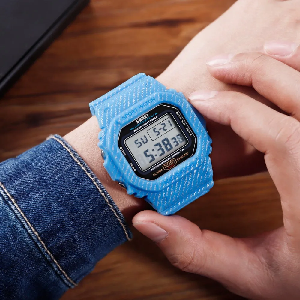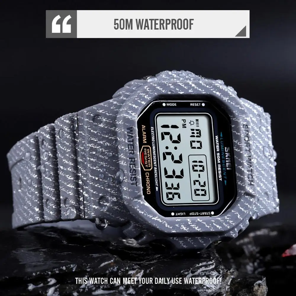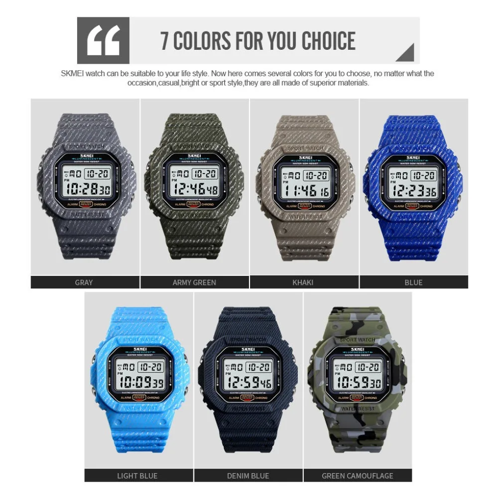 Часы наручные SKMEI мужские электронные в японском стиле, цифровые спортивные в стиле милитари, ковбойский хронометр с календарем, водонепроницаемость 5 бар