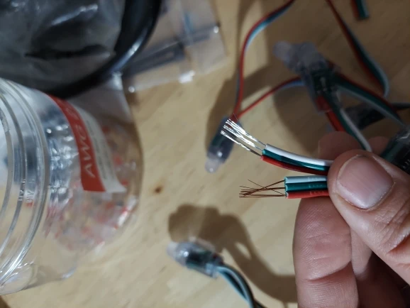 Я бы хотел получить дополнительную информацию. Но они прибыли быстро, и все, кроме одной светодиодной ленты, работают идеально. На одной веревке загораются только первые три светодиода. У него есть проблема с подключением или проблема с выходом, так как я мог отрезать ленту после третьего светодиода и проверить остальные без проблем. К сожалению, отдельные модули в горшке, поэтому я не могу получить их, чтобы проверить соединение.