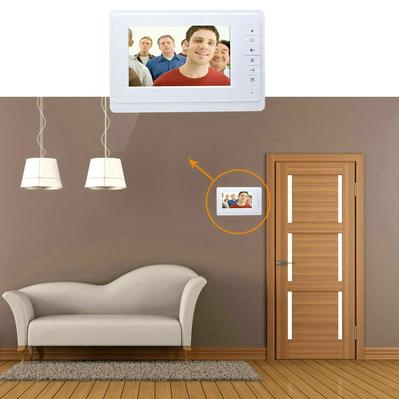 Панель из алюминиевого сплава внутреннего блока, модная и роскошная.Небольшой дождь и устойчивость к окислению для наружного блока из прочного алюминиевого сплава.Цветной TFT ЖК-дисплей 7 дюймов без излучения, низкое энергопотребление и высокое разрешение.ИК камера с ночным видением.Функция электроблокировки-управления.Гарнитура громкой связи.Функция бесшумной внутренней связи.Наблюдение за внешней стороной двери.16 видов дверных звонков.Объем, яркость и контрастность регулируются.Простая установка самостоятельно с помощью адаптера и кабеля, которые мы предоставляем в этом комплекте.