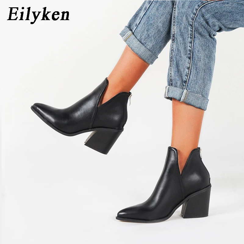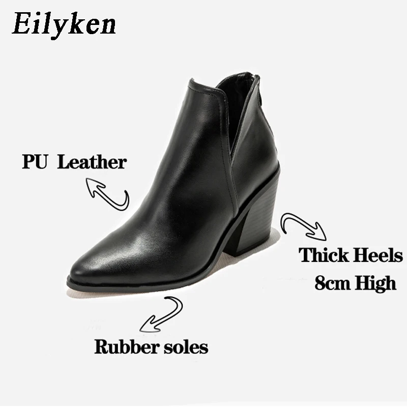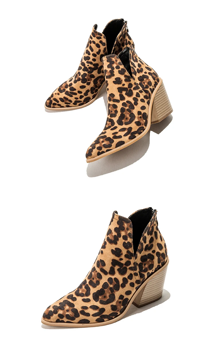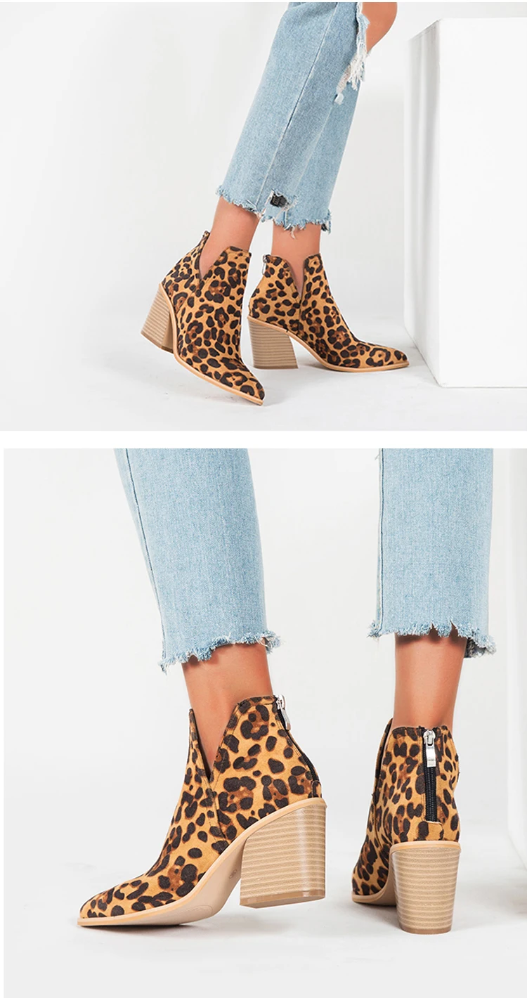 Ботинки женские EilyKen на среднем каблуке, леопардовые, без застежек, повседневные, черные, на квадратном каблуке