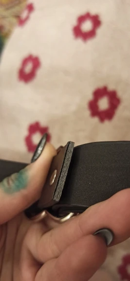 Ремень нормальный за эти деньги, большего ожидать и не стоило. Для худеньких девочек прийдётся делать отверстие в ремне. На ОБ 91 от последнего отверстия до нужного места для застёжки ещё ±7см. Фурнитура хорошая, продержится долго, сам ремень - не уверенна. Сделан из дешёвого дерматина, поэтому может со временем потрескаться. Присутствует очень сильный запах, который за две недели со дня получения не выветрился.
