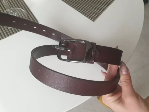 Хороший ремень, но немного тоньше, чем представляется, да и смотрится немного мелко в джинсах. Пришлось проделывать дырку дополнительную, а я не худышка, так что рассчитывайте это. Талия 68, если что. Но держится хорошо, пряжка металлическая.