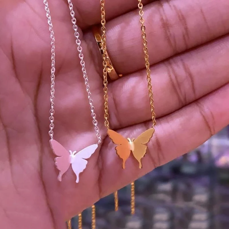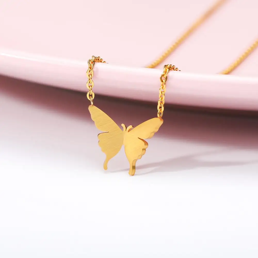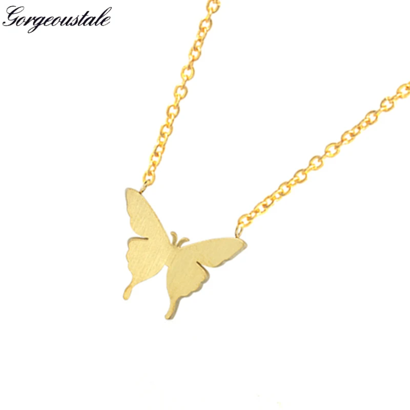 Браслеты с подвесками в виде бабочки ожерелье для женщин и девочек нержавеющая сталь Золотая цепочка ожерелье бабочки кулон колье ювелирное изделие колье Femme