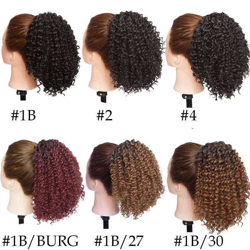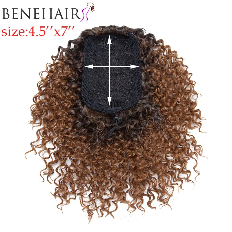 BENEHAIR затягивающийся афро кудрявый хвостик короткий обруч синтетический зажим в хвостик накладные волосы для наращивания Афро-американский
