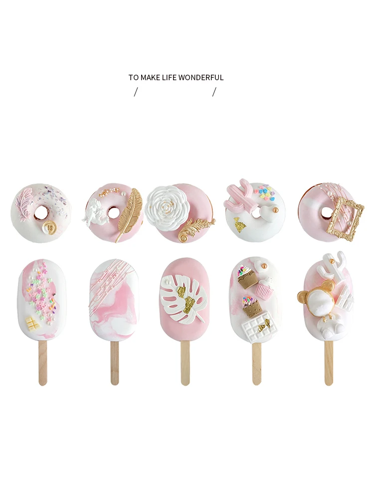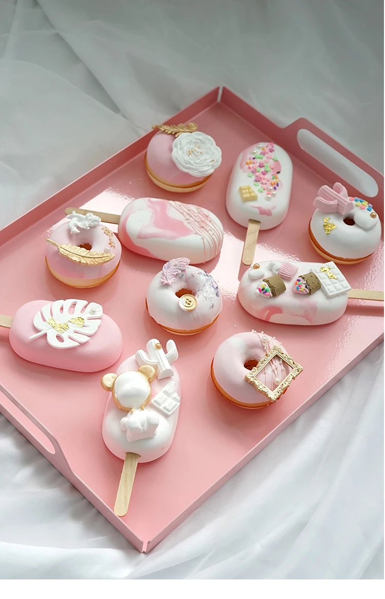 Искусственные розовые пончики SWEETGO, блестящая глина, модель зеленого цвета в стиле ins, декорирование десертов, инструменты для демонстрации фотографий