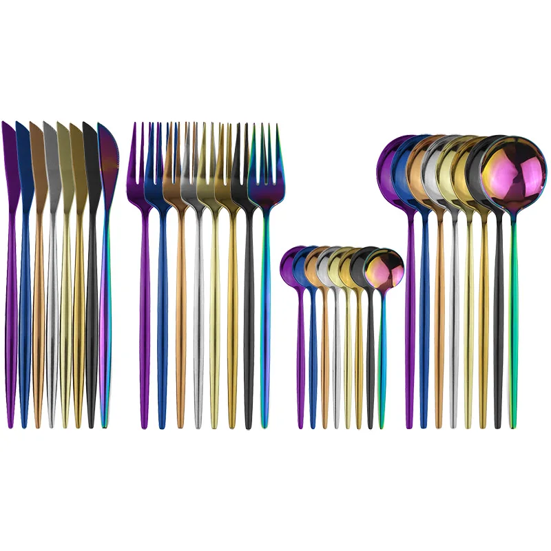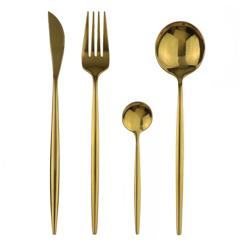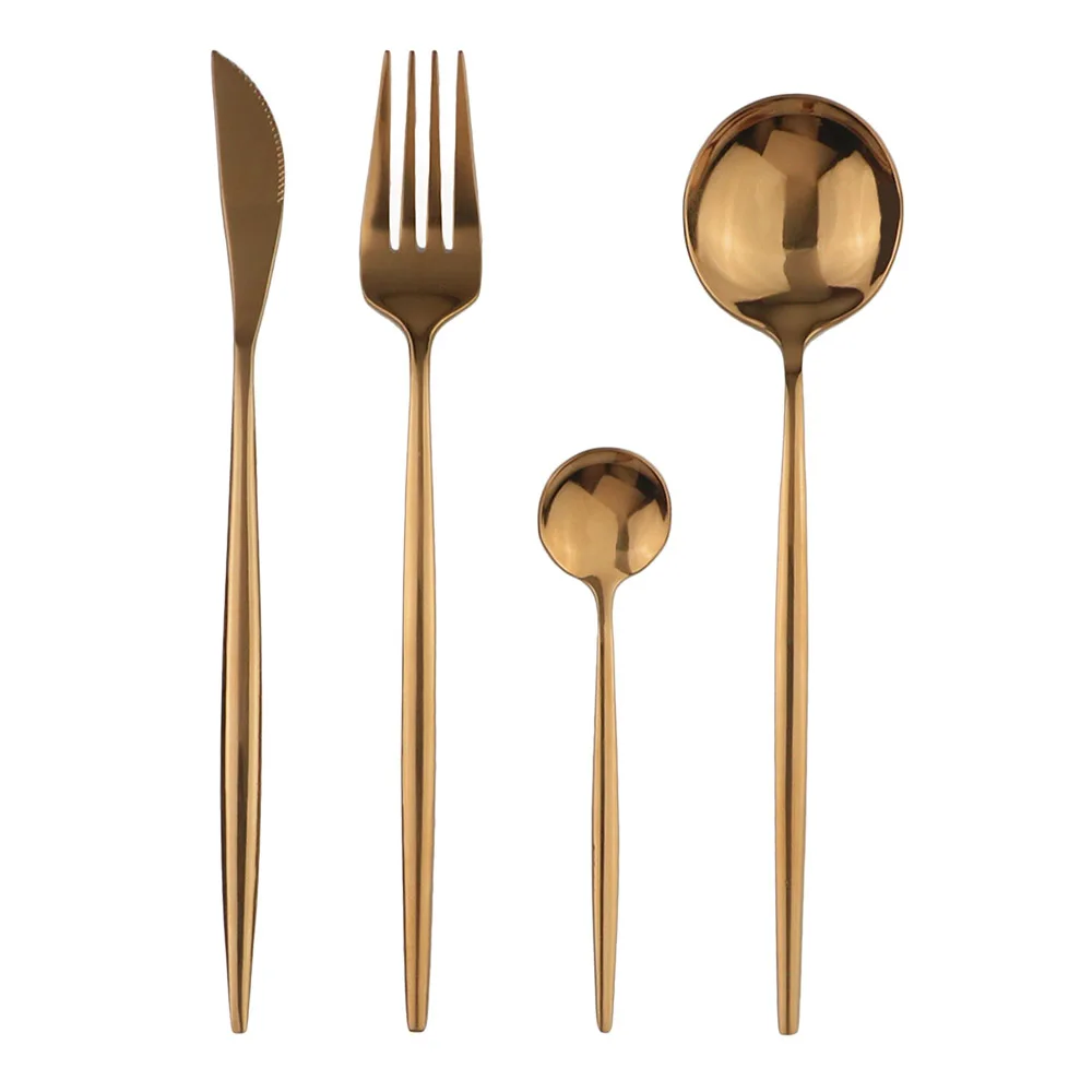 Набор столовых приборов из нержавеющей стали, набор черных столовых приборов 1810, с зеркальным покрытием под золото, с ножом, вилкой, ложкой, столовые приборы