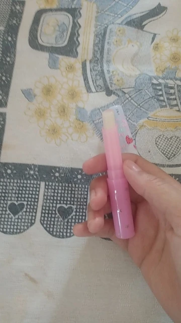 Помадка, такая же как на фото, небольшая, приятный клубничный запах, даёт слегка розовый оттенок, доставка быстрая