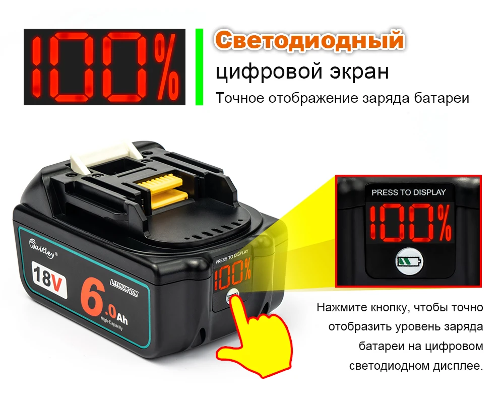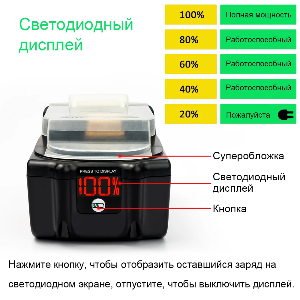 доставка до Ростовской области 7дней к гайковерту и болгарки подходит индикатор зарядки врет