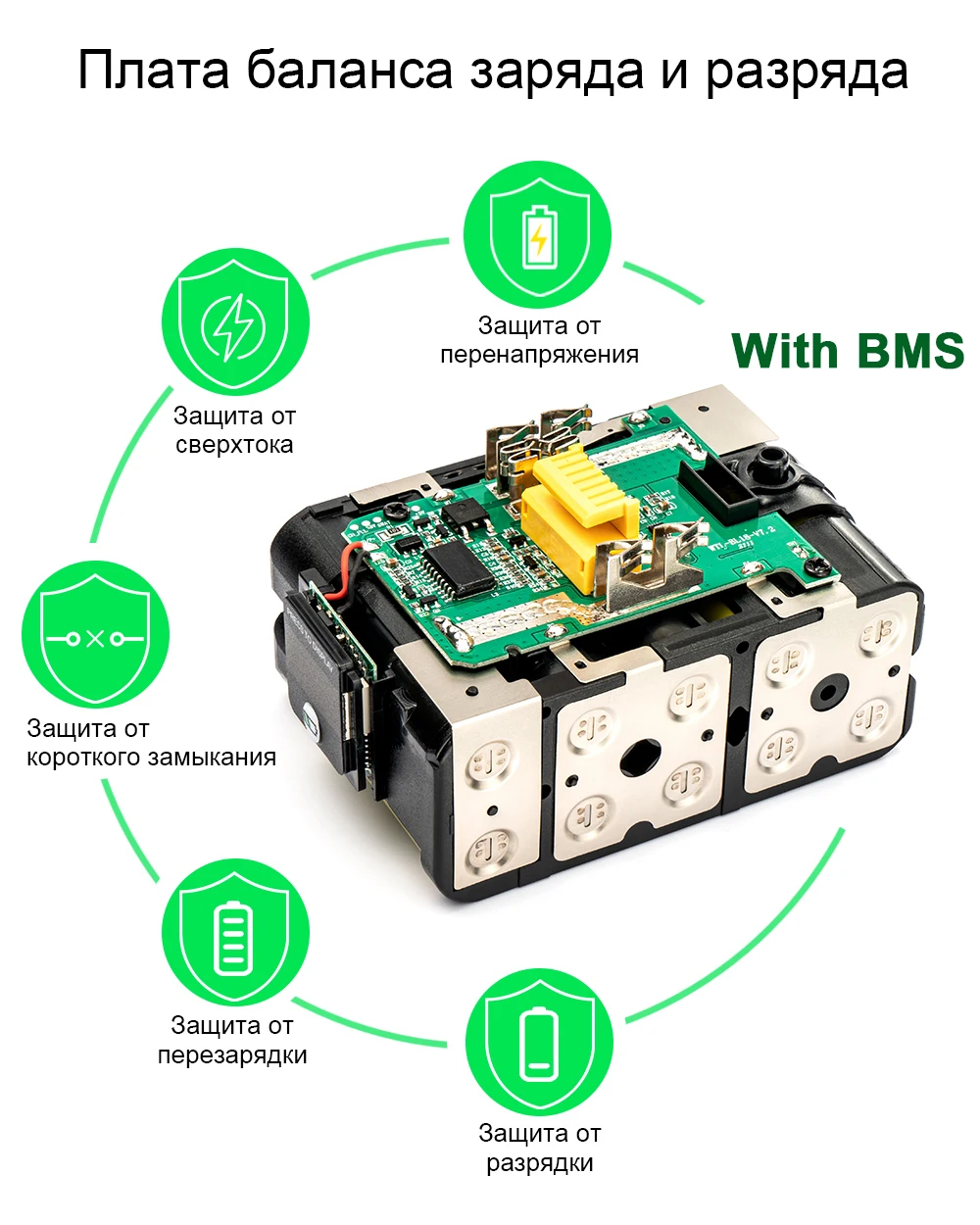 Спасибо за товар и его быструю доставку! В Лен. область за 3 дня курьером транспортной компаниеи IML до двери. Упакован был аккумулятор в пупырчатую пленку в картонной коробке. В целом виде и без повреждений.Пришел заряженным на 66%. Заряжается, работает отлично на болгарке, сабельной пиле. Сам аккумулятор не разбирал. Ёмкость реальную на акуму-ре не мерил. Насчёт балансировки платы не знаю. Позже отпишусь и дополню отзыв. Покупал за 2900 руб. Продавец положил подарок в посылку светодиодный светильник. Приятно. Удачи!