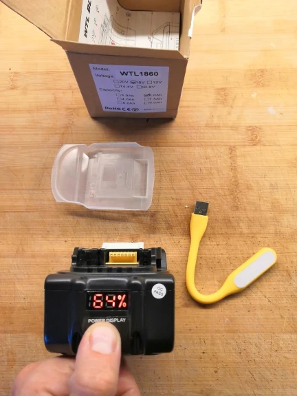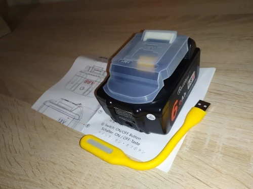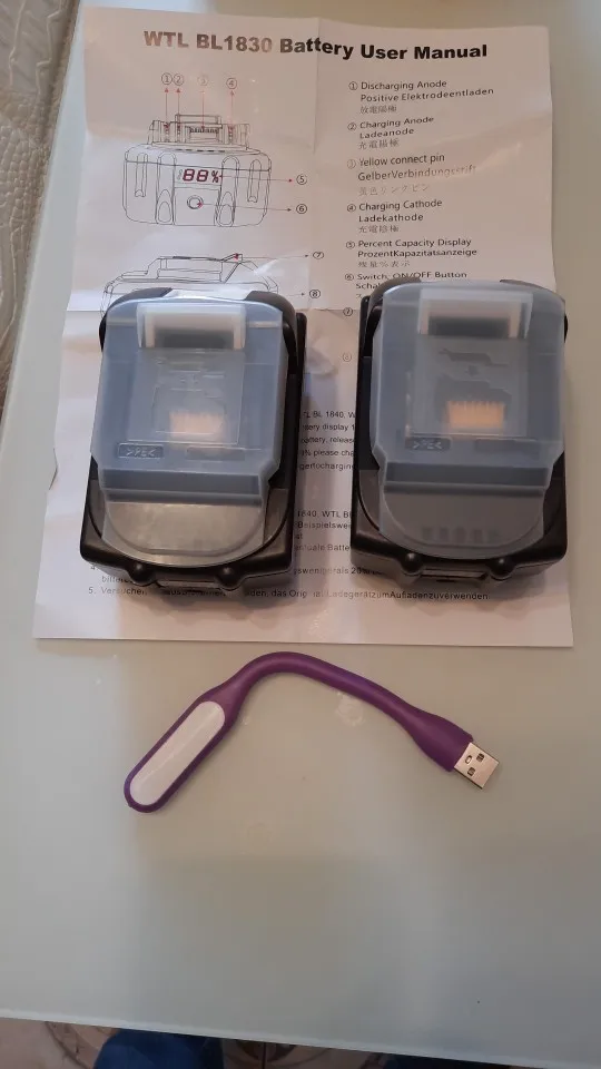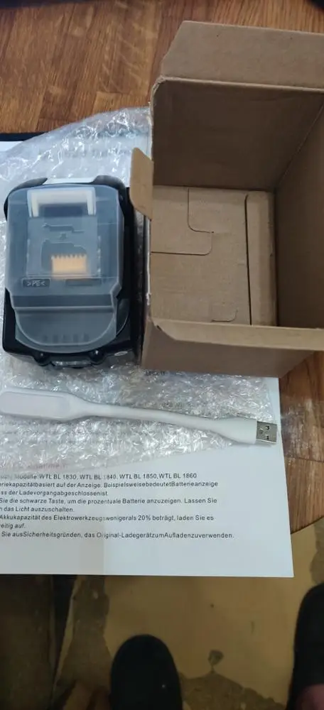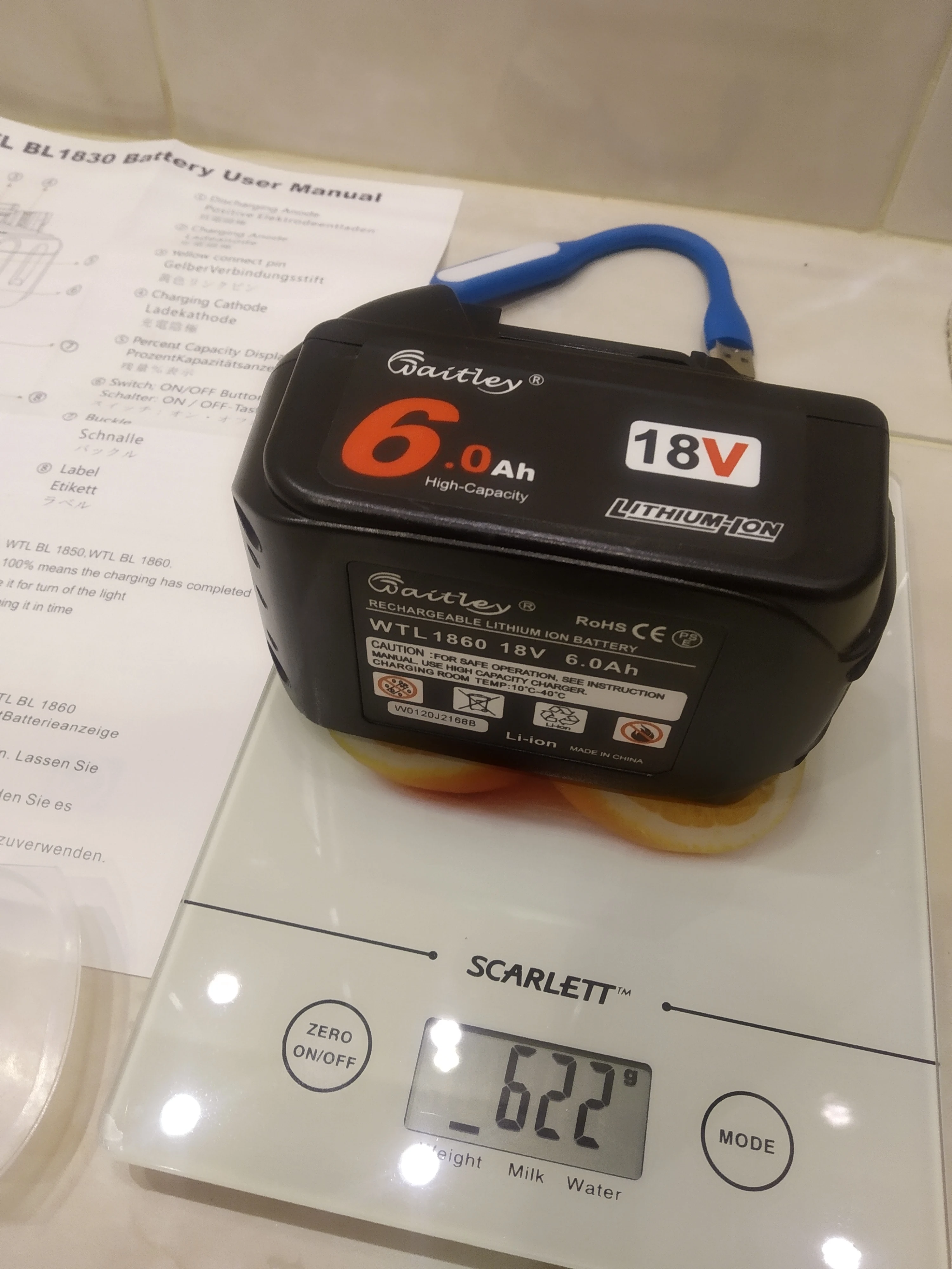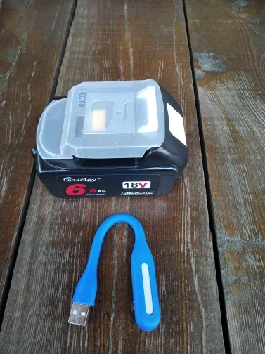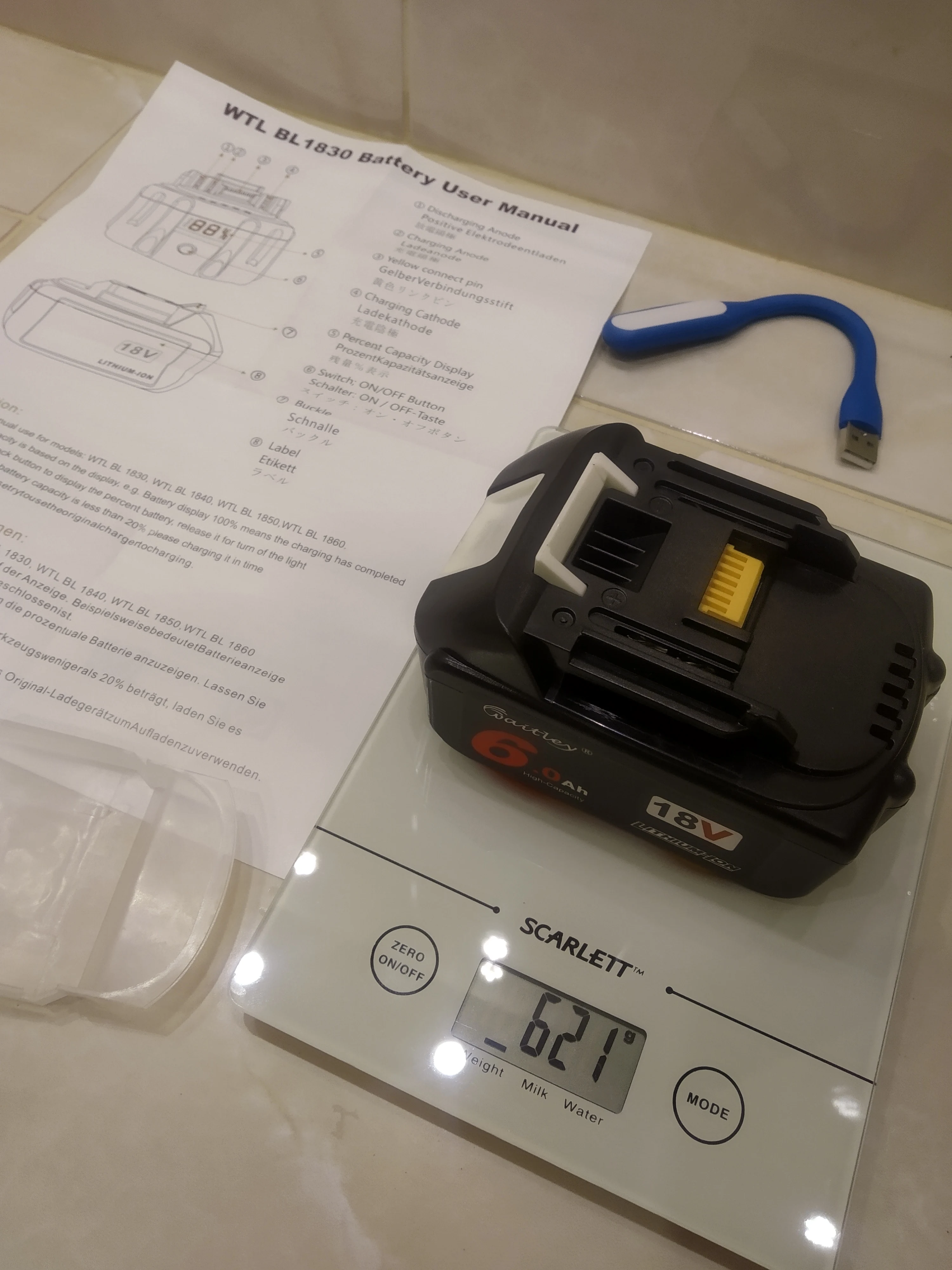 Посылка до Москвы добиралась 98 дней, 82 их них она путешествовала по Китаю. На вид качество хорошее, напряжение на батарее 18,1 в, индикатор показывает 64%. Продавец положил в посылку USB -фонарик. Думаю, пригодится. Рекомендую данную продукцию и Продавца.