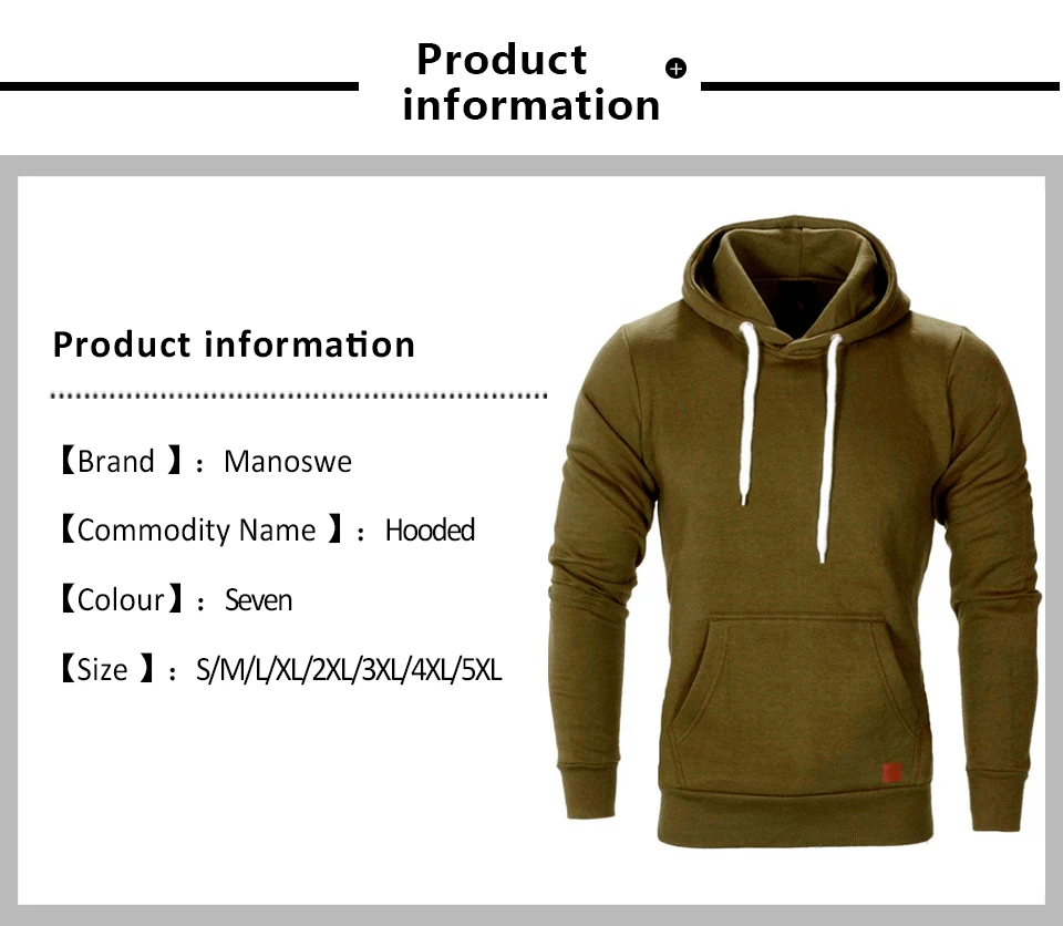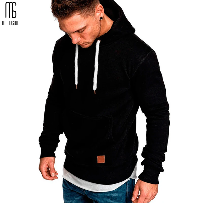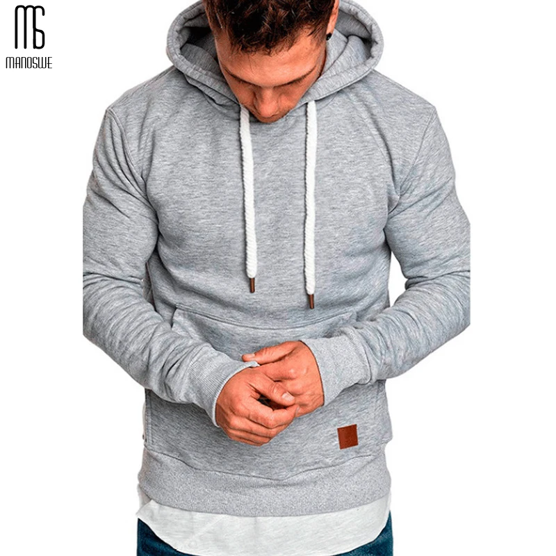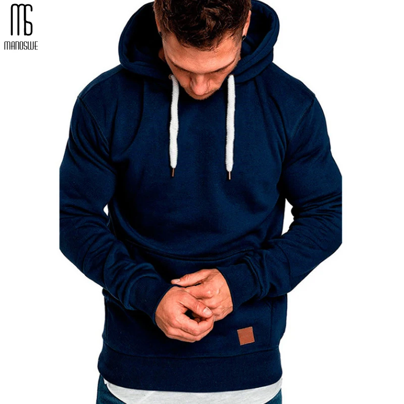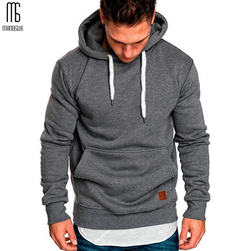 Мужская толстовка с капюшоном Manoswe, повседневная однотонная флисовая толстовка, спортивный костюм большого размера на осень и зиму, 2019