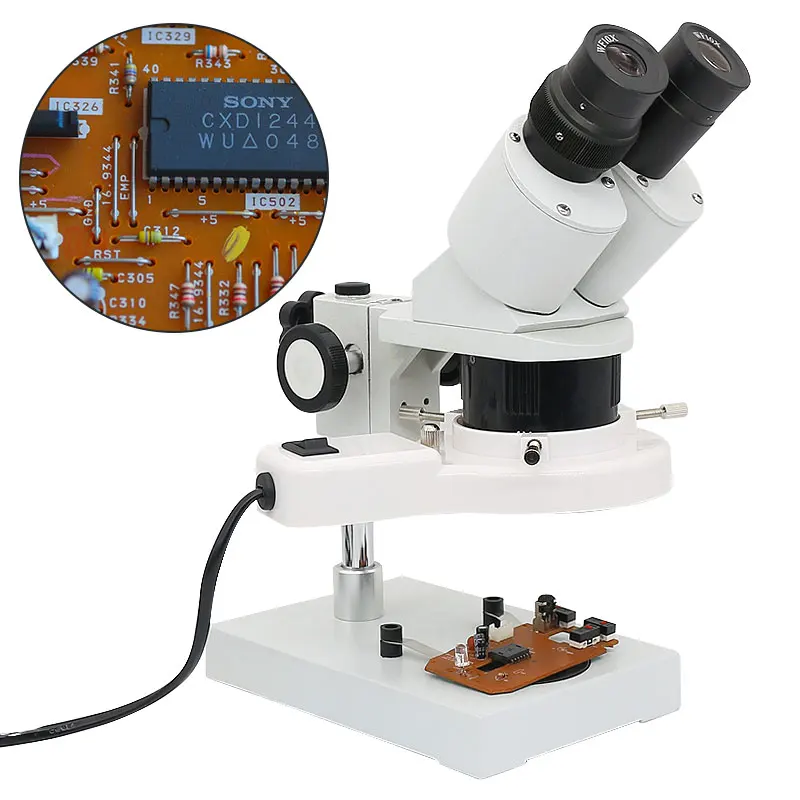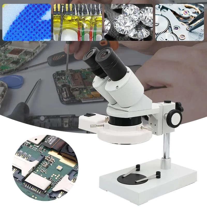 Промышленный стереомикроскоп с подсветкой, 20X 40X, инструмент для ремонта, пайки, часов мобильный телефон, ремонта печатных плат