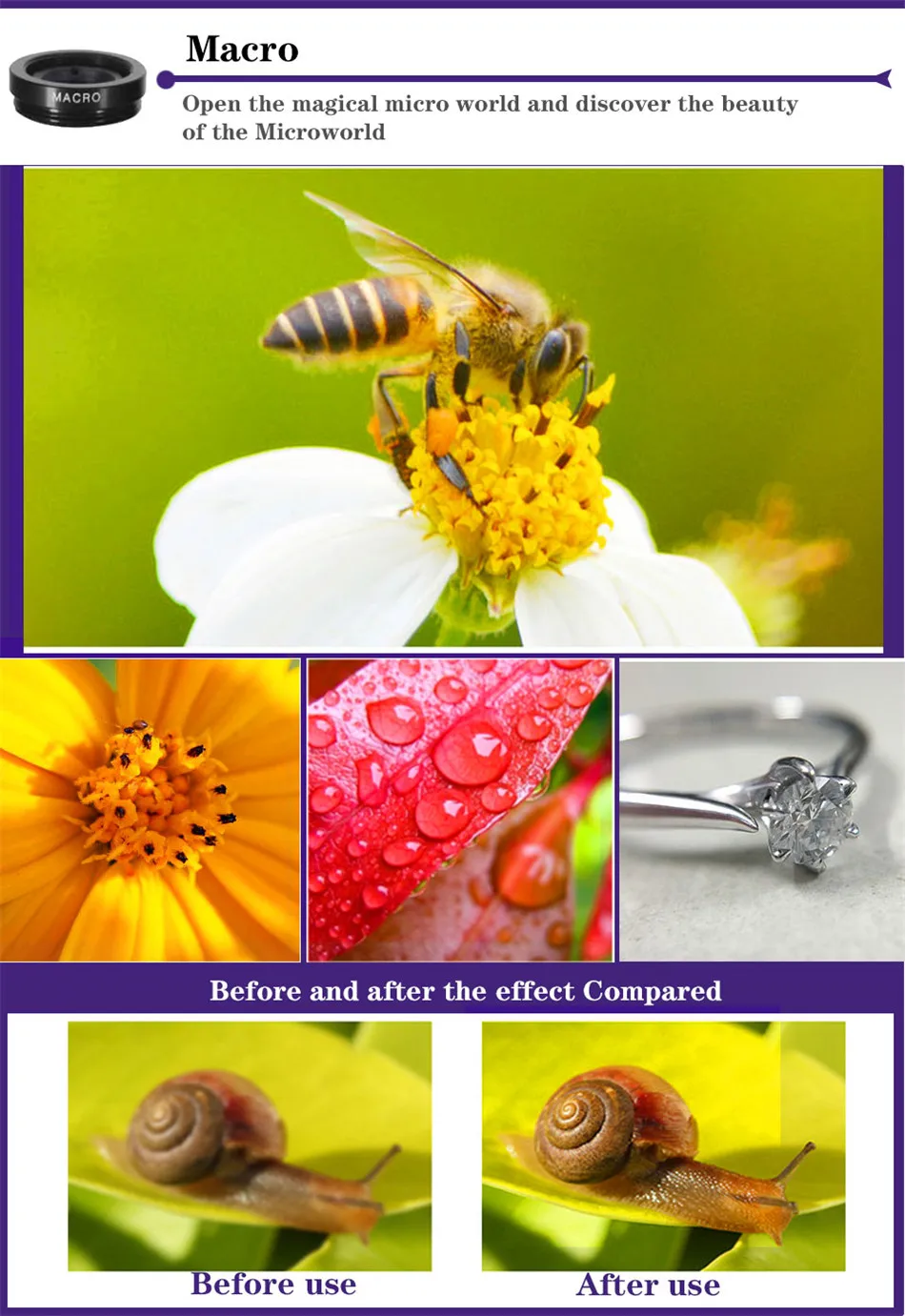 доставка 20 дней. упаковано хорошо. линзы все на месте, все вроде целые. макро снимает круто, но жаль что очень близко нужно подводить камеру к объекту. широкоугольный действительно расширяет. в общем, с функциями справляется, особенно для своей цены