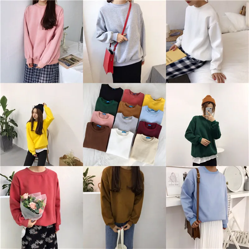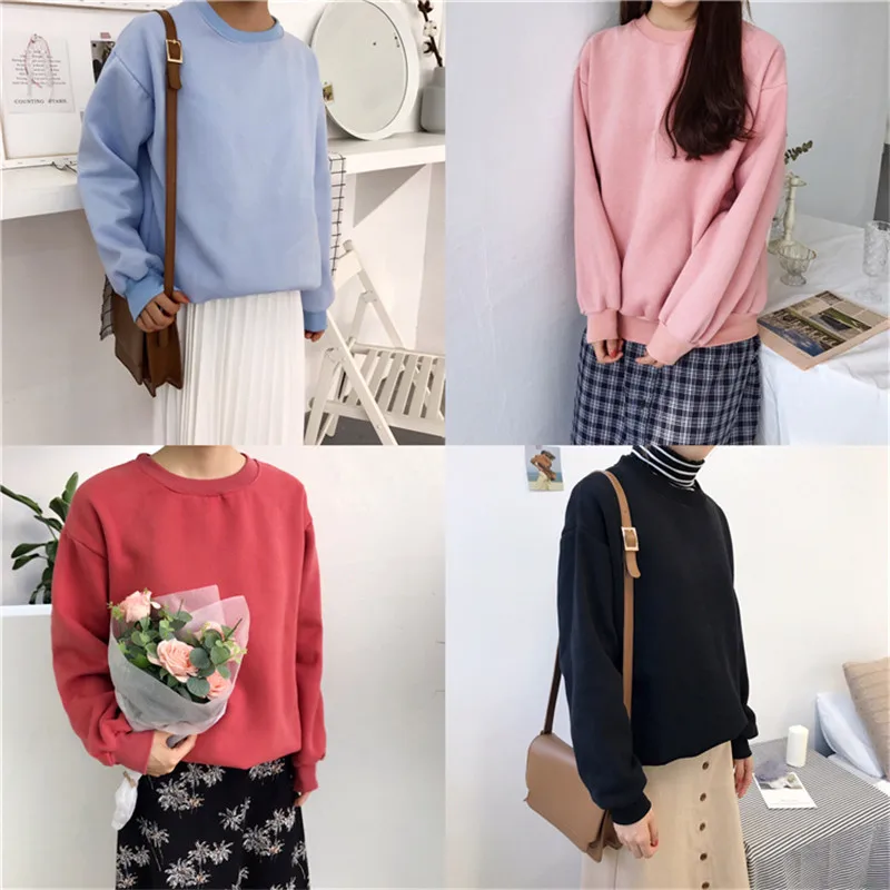 Sudaderas mujer 2019 Харадзюку однотонный Свитшот женский длинный р...