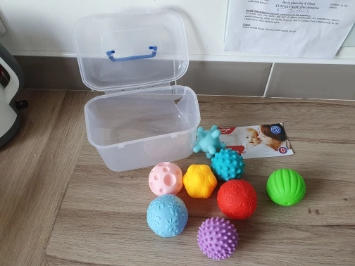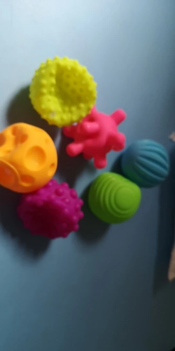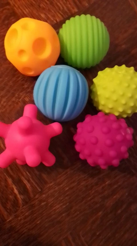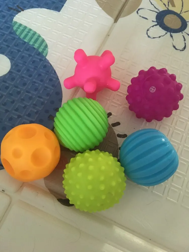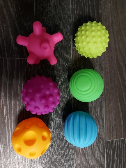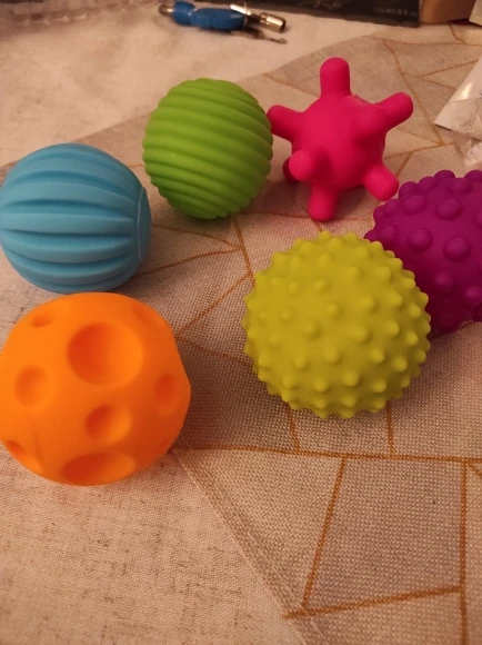Набор из 8ми мячей понравился больше, чем этот, там материал мягче. этот больше напоминает жесткую резину, не силикон. Но в сочетании с другим набором играем с удовольствием, т.к. формы и цвета разнообразные и очень приятные. Спасибо!