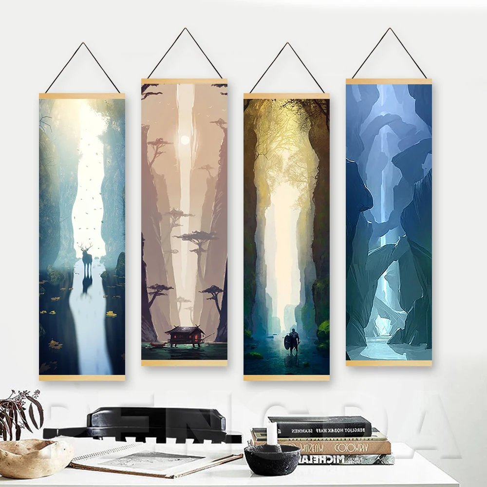 Печать на холсте постер из массива дерева подвесной свиток домашний...