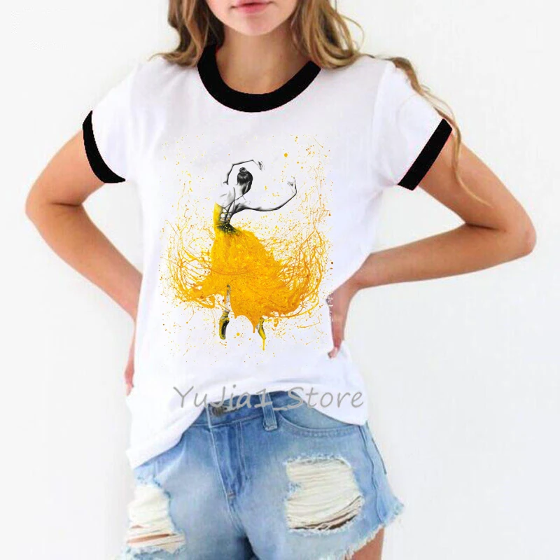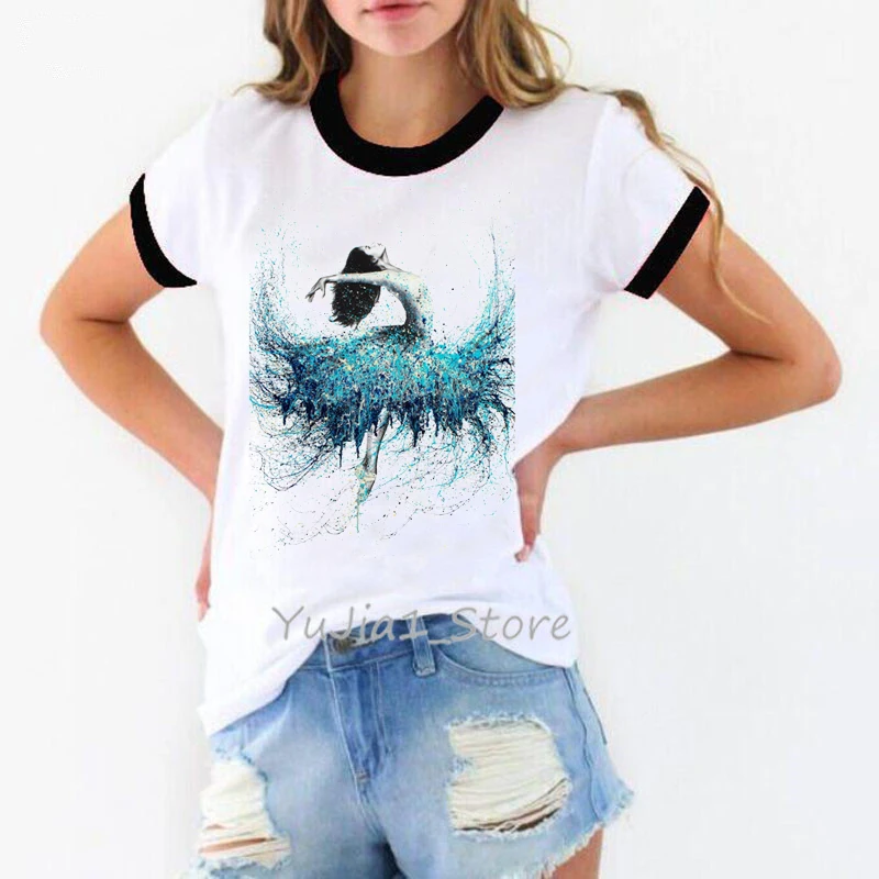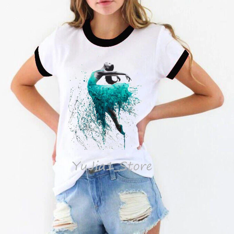 Женская одежда 2021, акварельная футболка для балерины, Женская Винтажная футболка, кавайная одежда, белая женская футболка, топ