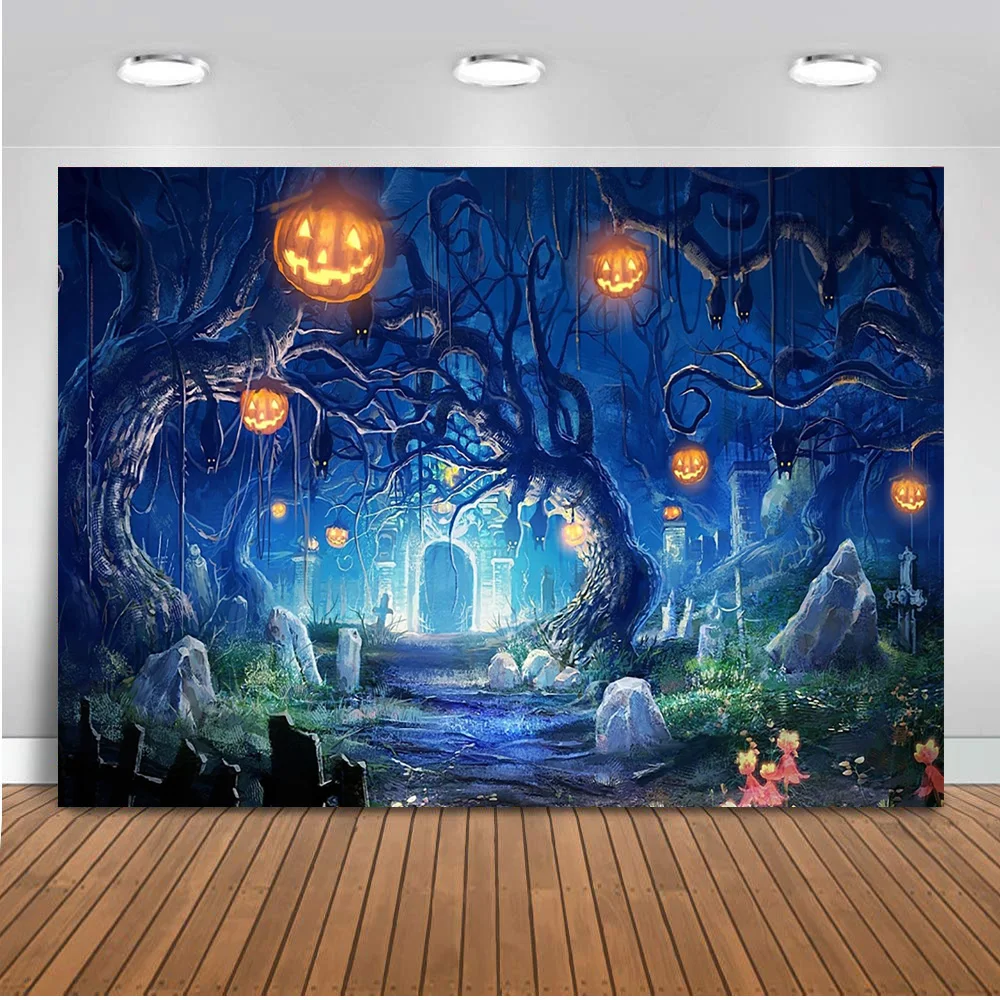 Хэллоуин фон ужас лес Тыква фонарь кладбище фон Хэллоуин вечерние НКА день всех святых призрак фотография фон