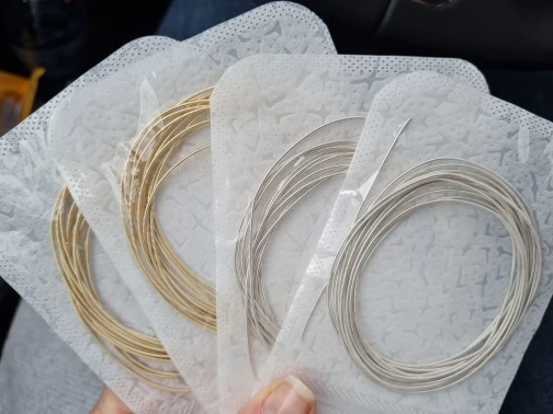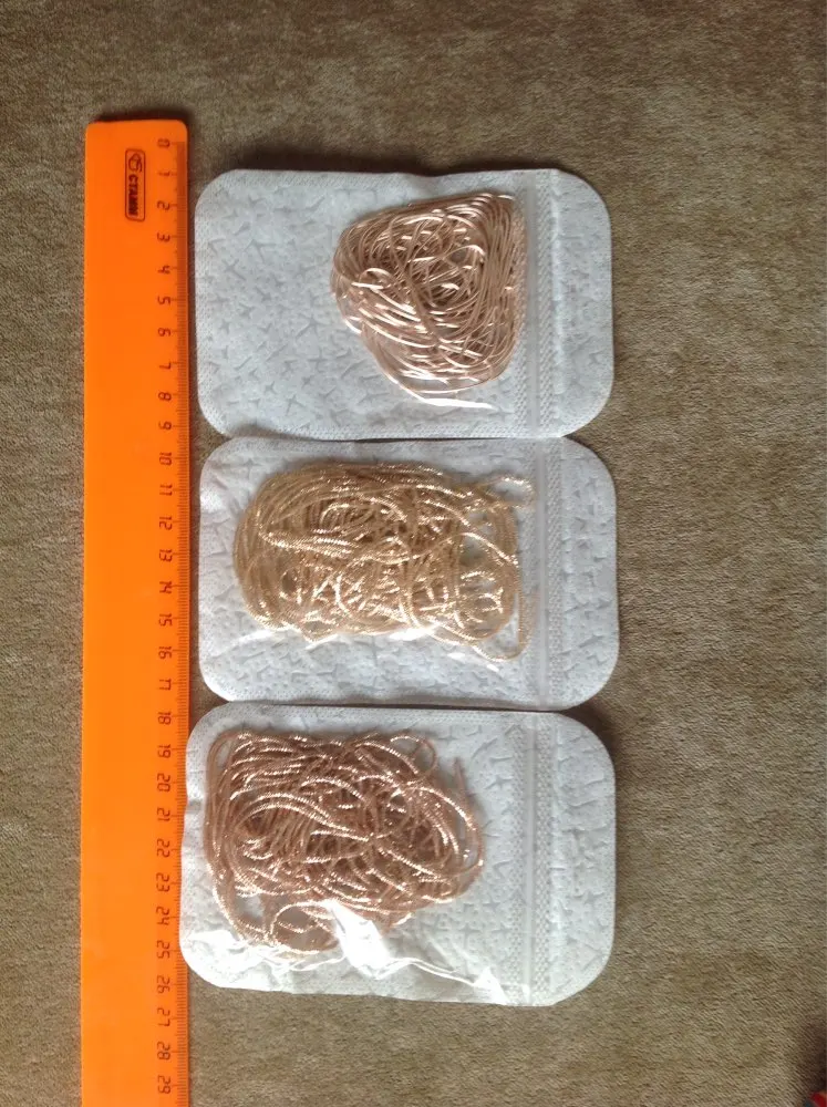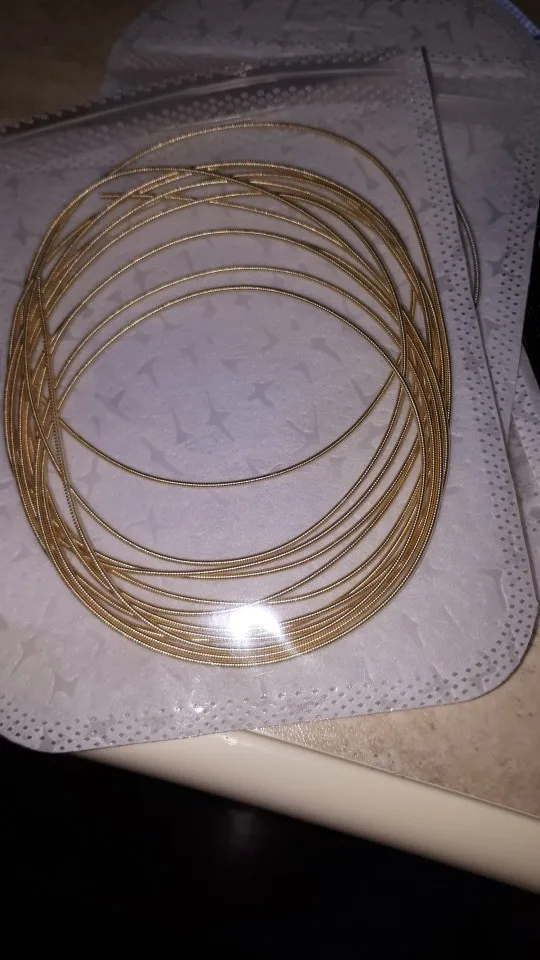 Провод хороший. Упаковка хорошая. Быстрая доставка. Серебряный Матовый круглый провод (мягкий) нарезать на 14 штук! Множество необратимых складок! Пульсирующее состояние. Я не вижу никаких логистических причин повреждения, так как в золотом цвете почти нет складок