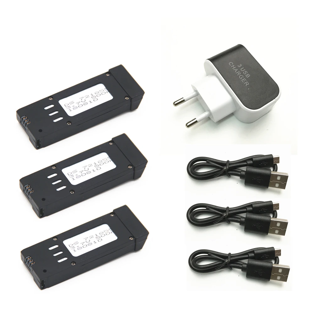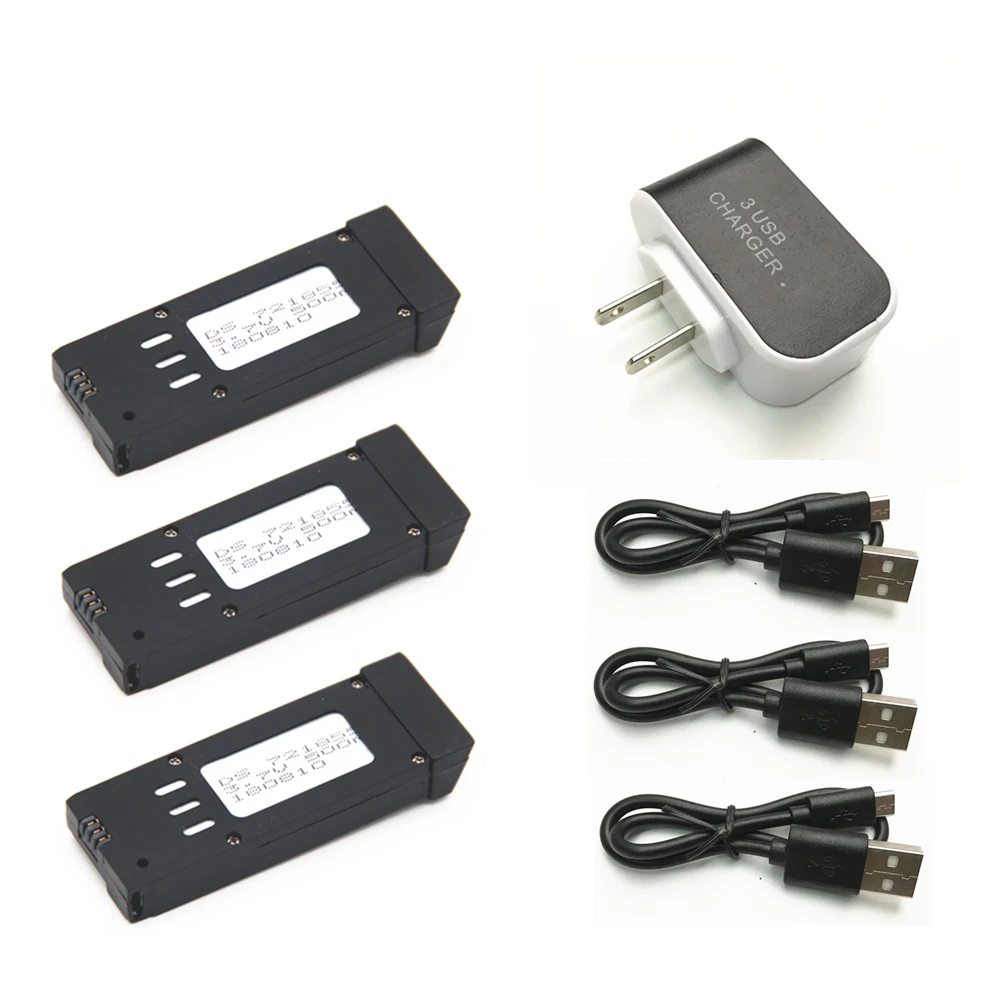 Название товара: зарядное устройство для аккумулятораЕмкость: 500 мАчНапряжение: 3,7 VКонфигурация: 1SВход: 100-240 В 0.35AВыход: 5,0 V 2.0AВес батареи: около 18 гРазмер батареи: 65*24*10 ммДлина кабеля USB: 81 смСпецификации адаптера. : ЕС СШАВремя полета: 7-9 минутВремя зарядки:3 батареи полностью заряжены около 90 минутВключение зарядных огней, полное выключение зарядных огней.